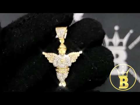 Cherub Angel .57cttw Diamond Pendant 10K Yellow Gold with Solid Back. Solid 10K Yellow Gold with Round Cut Genuine Diamonds hand set. Intricate details with precision micro pave prong setting. Real bling bling diamond pendant iced out. All Real Diamond Hip Hop Jewelry with nice details and quality at an affordable price.