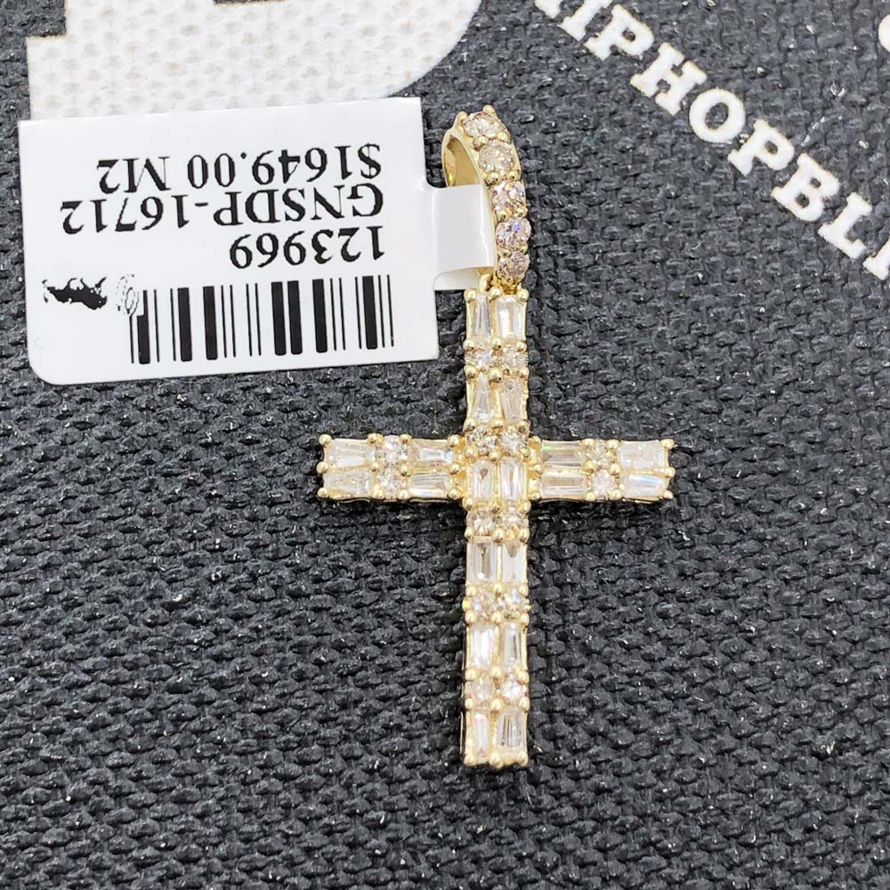 Double Baguette Diamond Pendant .58cttw 10K Yellow Gold. Solid 10K Yellow Gold with Genuine Diamonds hand set. Intricate details with precision micro pave prong setting. Real bling bling diamond pendant iced out. All Real Diamond Hip Hop Jewelry with nice details and quality at an affordable price.