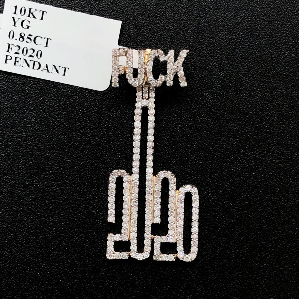 F 2020 Diamond Pendant .85cttw 10K Yellow Gold. Solid 10K Yellow Gold with Round Cut Genuine Diamonds hand set. Intricate details with precision micro pave prong setting. Real bling bling diamond pendant iced out. All Real Diamond Hip Hop Jewelry with nice details and quality at an affordable price.