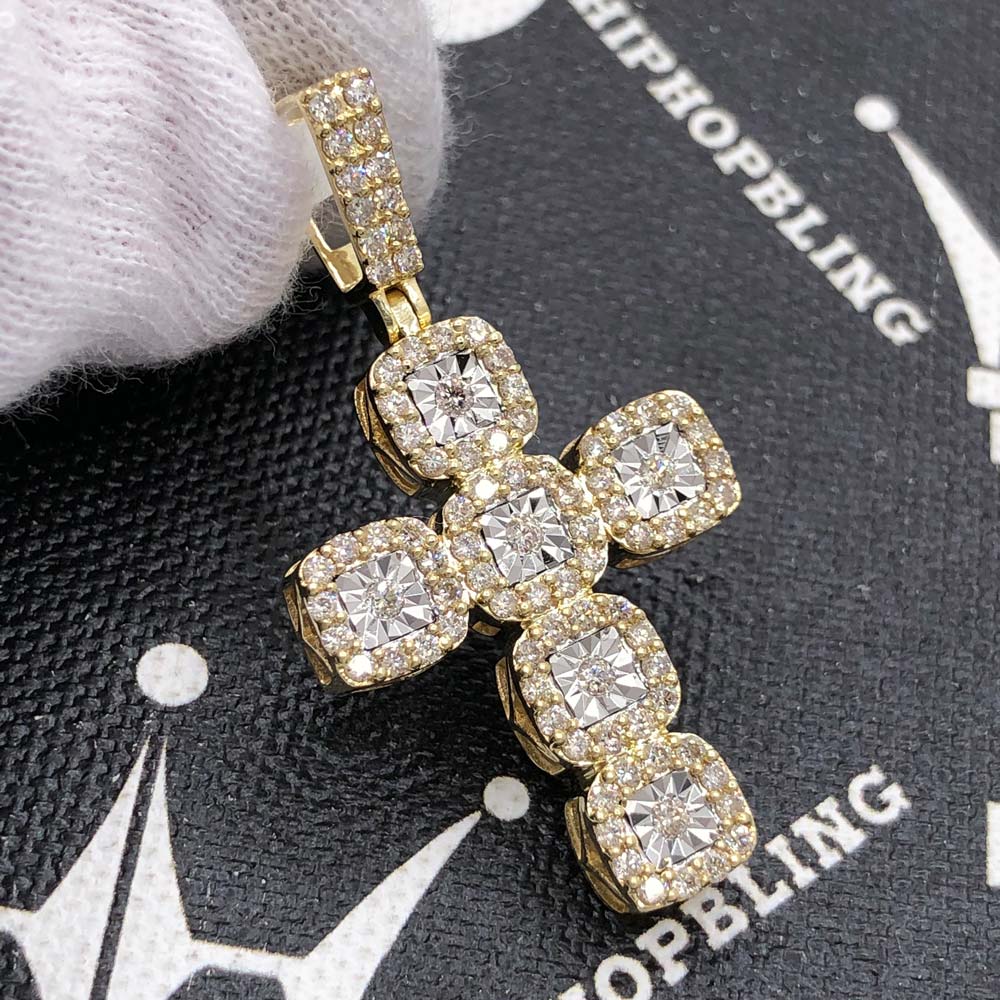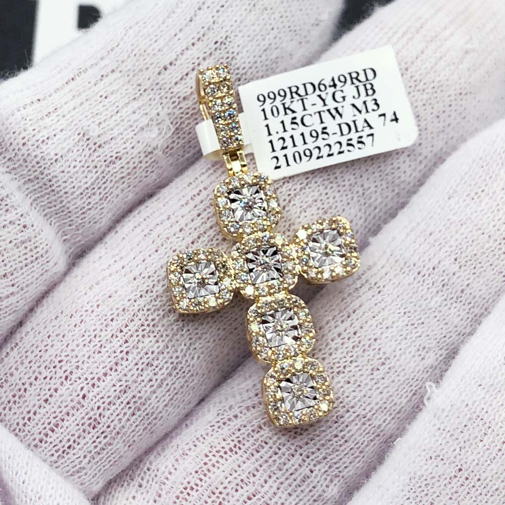 Miracle Cluster Cross Diamond Pendant 1.15cttw 10K Yellow Gold. Solid 10K Yellow Gold with Genuine Diamonds hand set. Intricate details with precision micro pave prong setting. Real bling bling diamond pendant iced out. All Real Diamond Hip Hop Jewelry with nice details and quality at an affordable price.