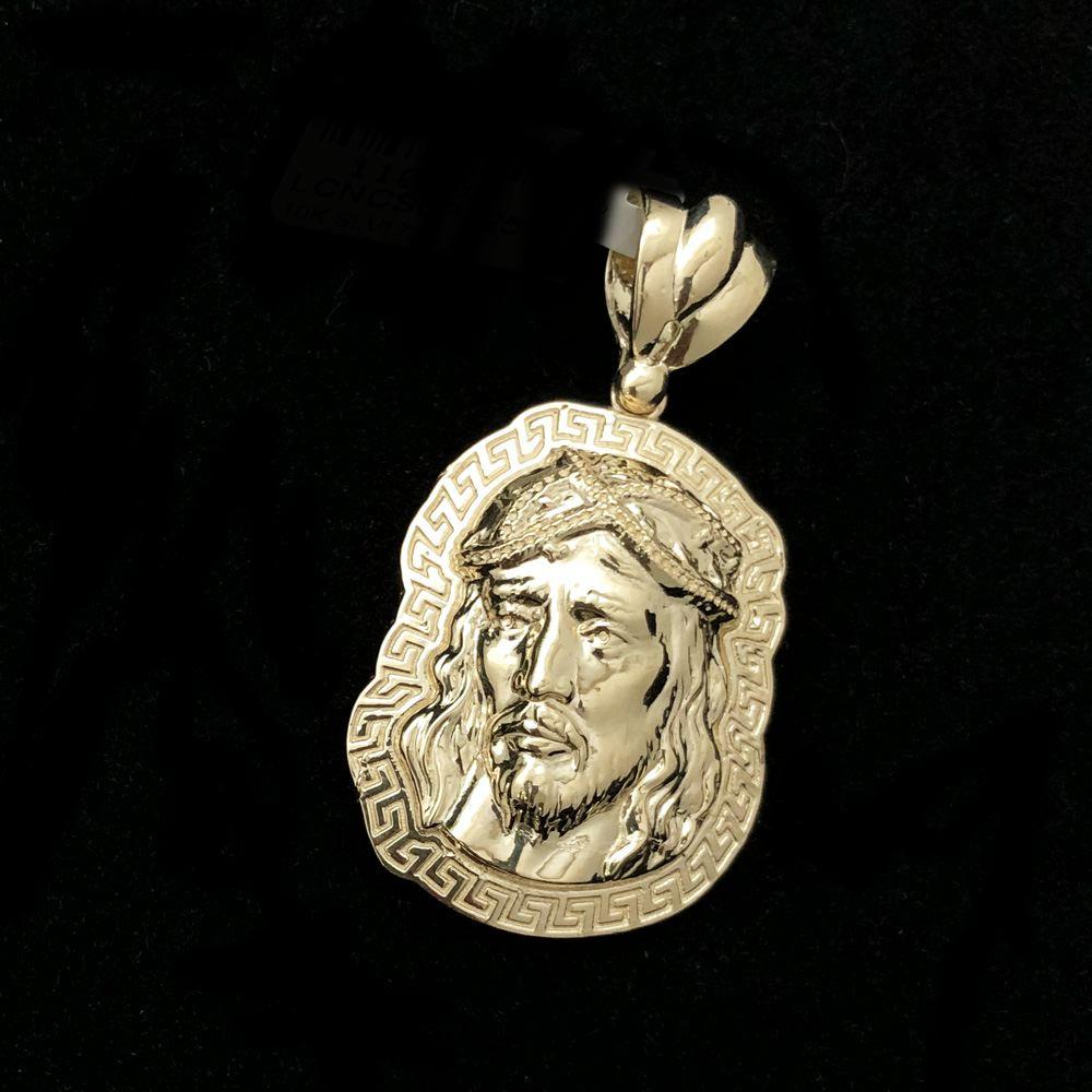 Jesus Greek Outline #2 10K Yellow Gold Pendant. Crafted from Solid 10K Yellow Gold and highly detailed with Diamond Cuts for added sparkle. All real Gold quality made at an affordable price.