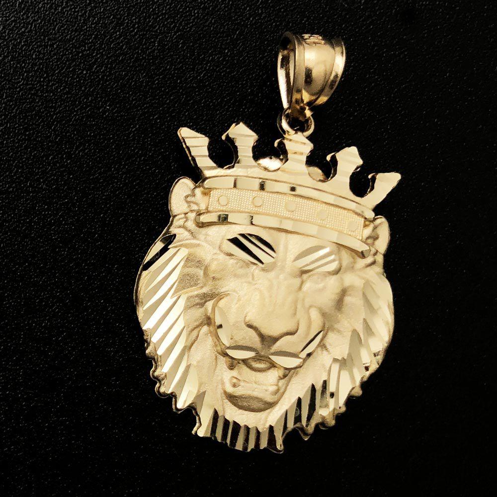 Lion Crown M 10K Yellow Gold Pendant. Crafted from Solid 10K Yellow Gold and highly detailed with Diamond Cuts for added sparkle. All real Gold quality made at an affordable price.