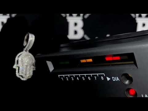 Hamsa Mini Baguette VVS Moissanite Pendant .925 Sterling Silver. This iced out Moissanite Pendant is simply breathtaking and displays an incredible bling bling shine. We insisted on using the finest Moissanite stones available to craft this perfect high end 'diamond' bling bling Moissanite Micro Pave Charm. Moissanite stones are carbon based stones just like real Diamonds. The benefit of our Moissanite hip hop jewelry is that you get a better shine for much less money than genuine Diamonds. Our Moissanite Stones have a higher refractive index than real Diamonds and rank 9-9.5 on Mohs hardness scale.