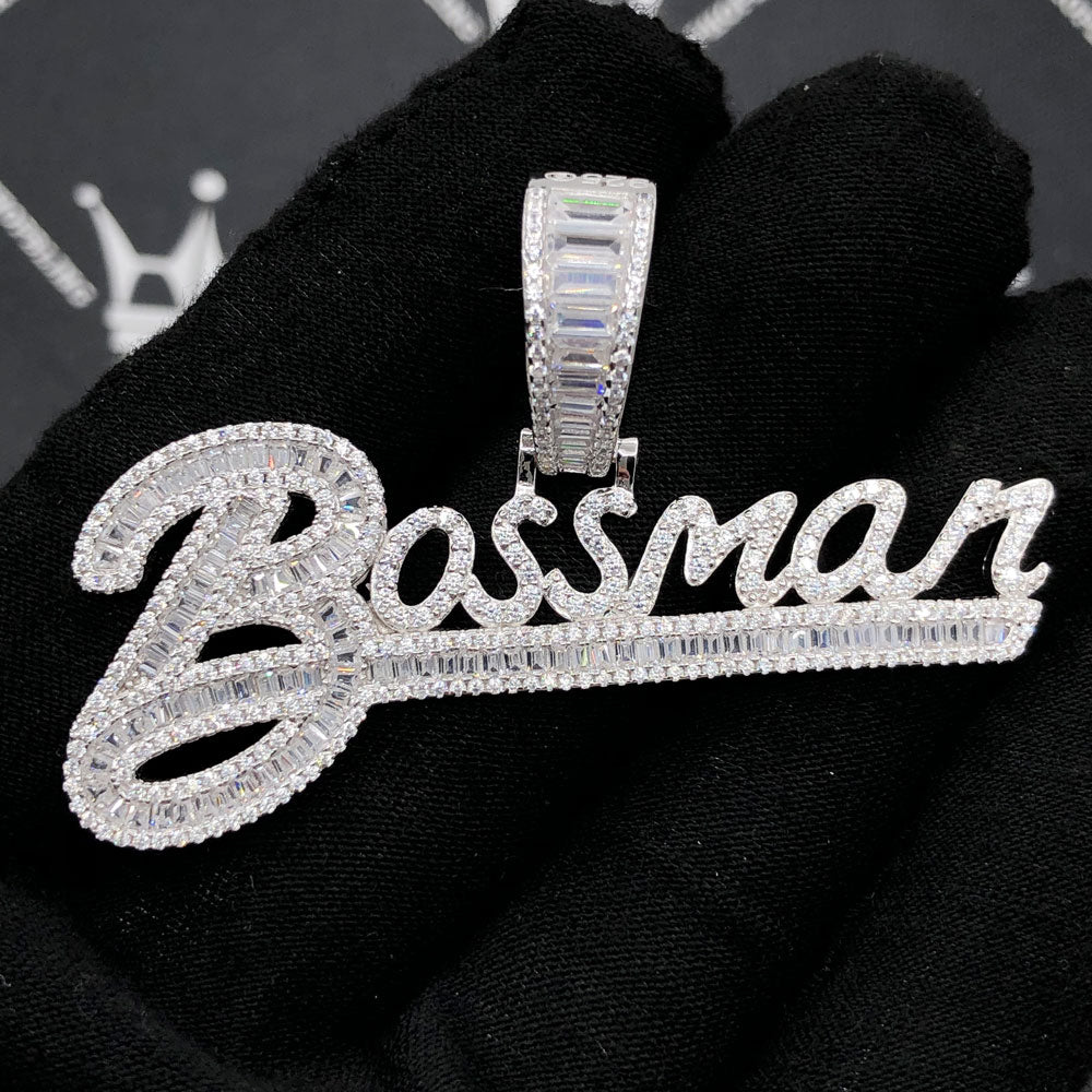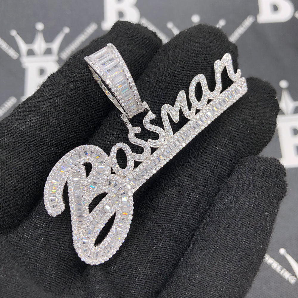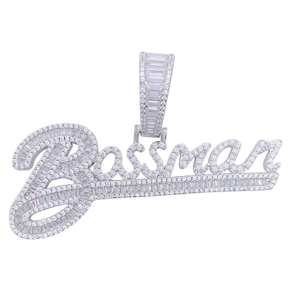 .925 Silver Bossman VVS CZ Iced Out Pendant.  Crafted from real Solid .925 Sterling Silver with an incredible bling bling shine.  Limited Edition Iced Out Hip Hop Pendant.  Stones are VVS Simulated Diamonds Prong Set, the same way genuine diamond hip hop jewelry is made.  Get the same look, feel and shine for less on real Silver.  Stand out from the crowd with this this detailed quality made iced out pendant.