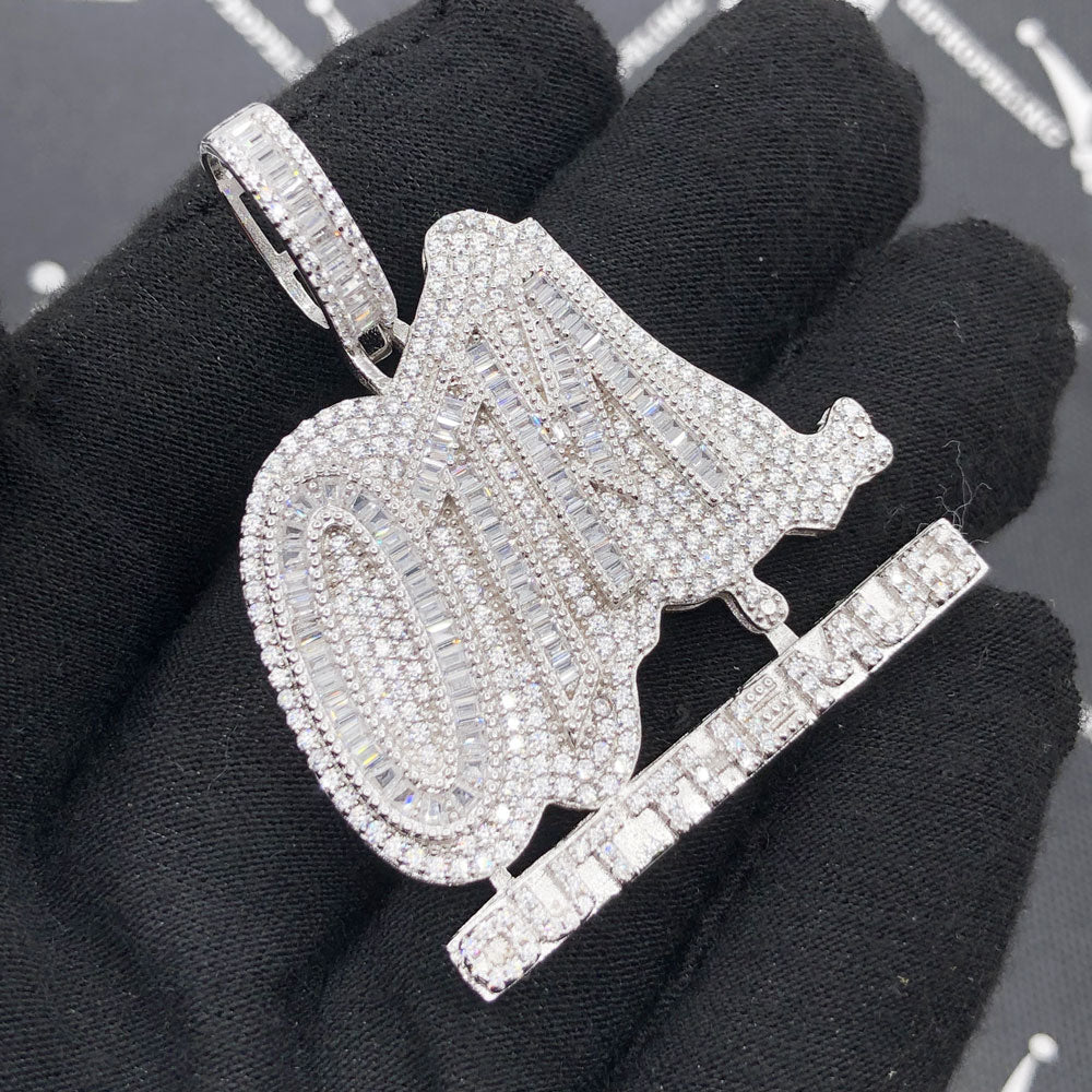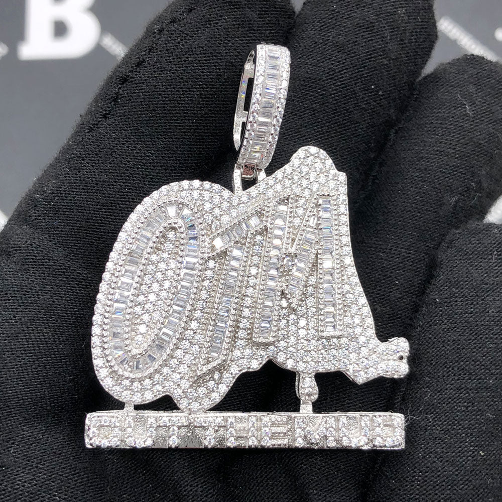 .925 Sterling Silver OTM Out The Mud Baguette VVS CZ Iced Out Pendant.  Crafted from real Solid .925 Sterling Silver with an incredible bling bling shine.  Limited Edition Iced Out Hip Hop Pendant.  Stones are VVS Simulated Diamonds Prong Set, the same way genuine diamond hip hop jewelry is made.  Get the same look, feel and shine for less on real Silver.  Stand out from the crowd with this this detailed quality made iced out pendant.