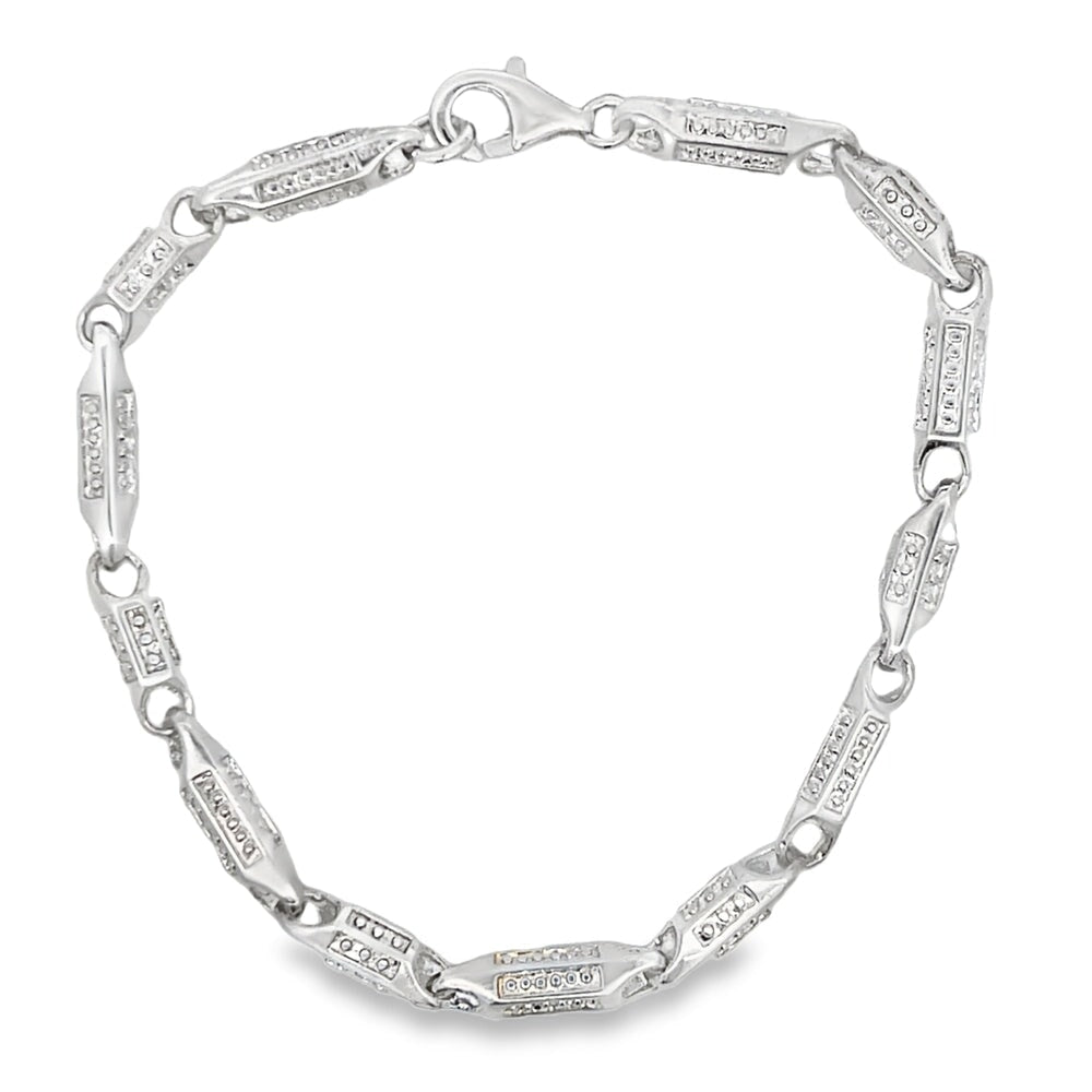 Textured Bullet Link Bracelet .925 Sterling Silver. Quality crafted hip hop bling bracelet. Crafted from fine .925 Sterling Silver and wrapped to look and feel like solid Gold at a fraction of the cost. A must have in your hip hop jewelry collection.