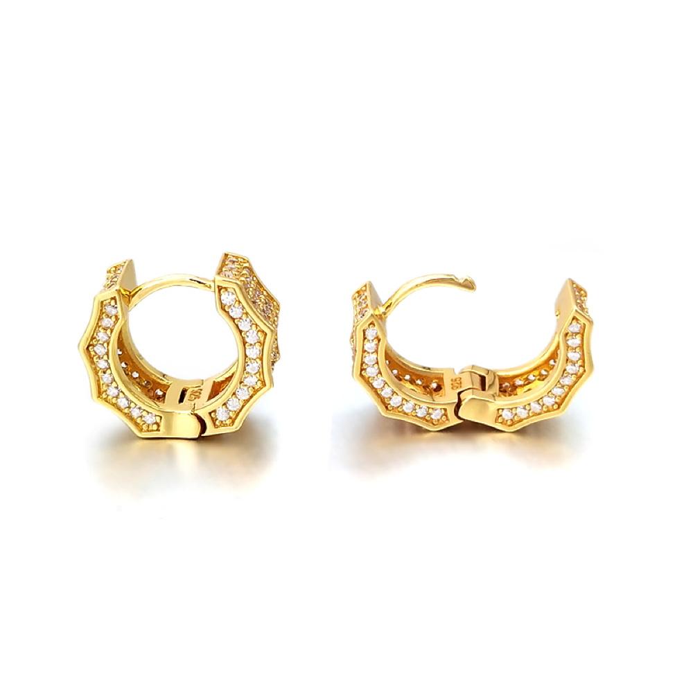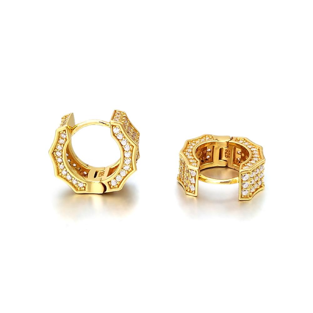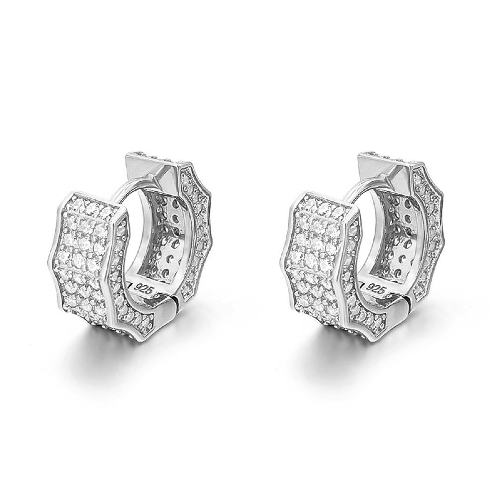 3D Ice Wave CZ Huggie Hoop Earrings .925 Silver.  Ice set on the sides too!These beautiful unisex bling bling earrings are crafted from fine .925 Sterling Silver and Wrapped in Thick Layers of Yellow or White Gold.  Each and every VVS Simulated Diamond stone is hand set with prongs.  Intricately detailed design elements with precision stone setting.  Order your real .925 Sterling Silver Earrings today.