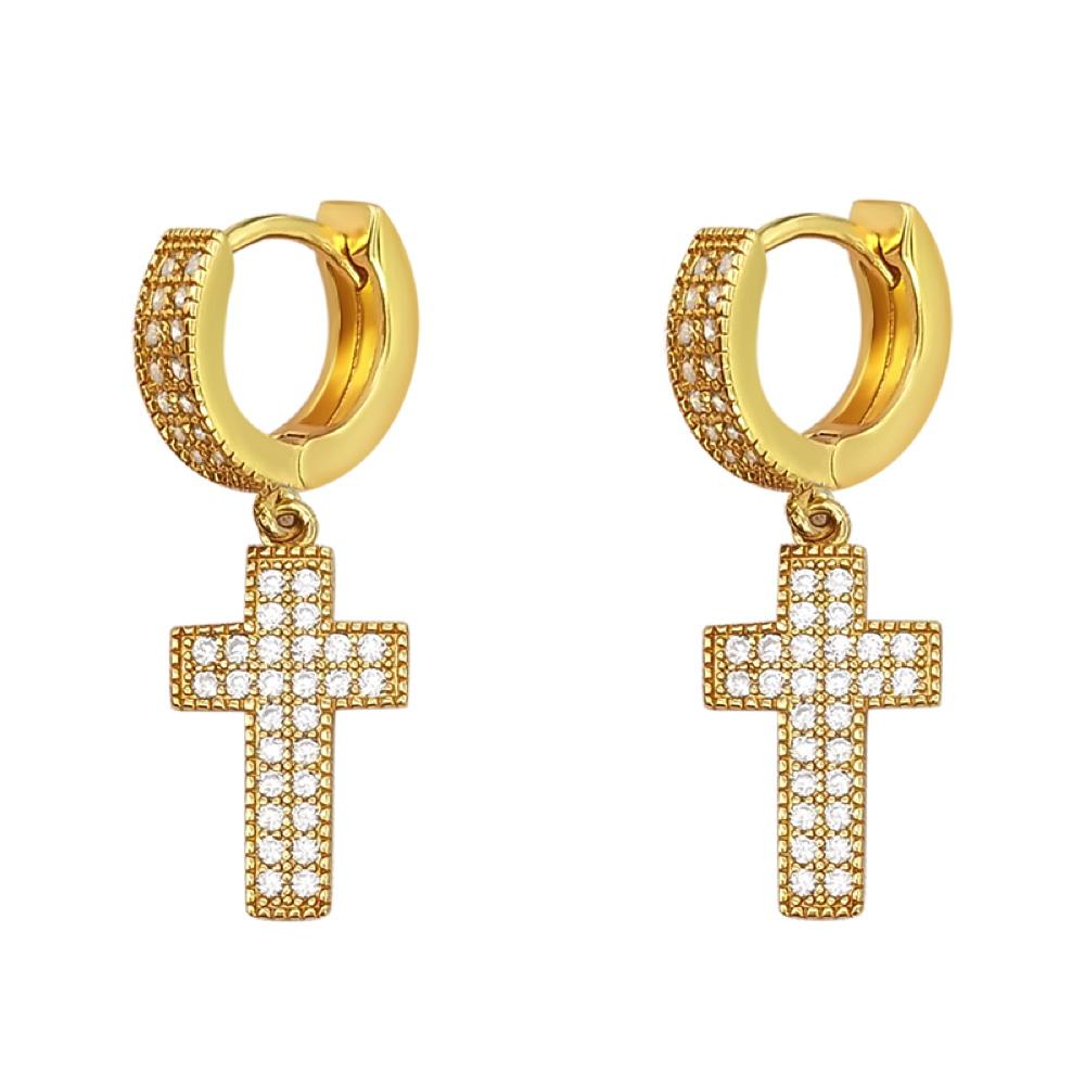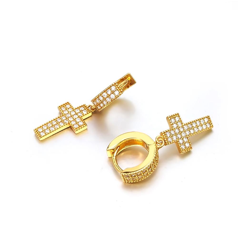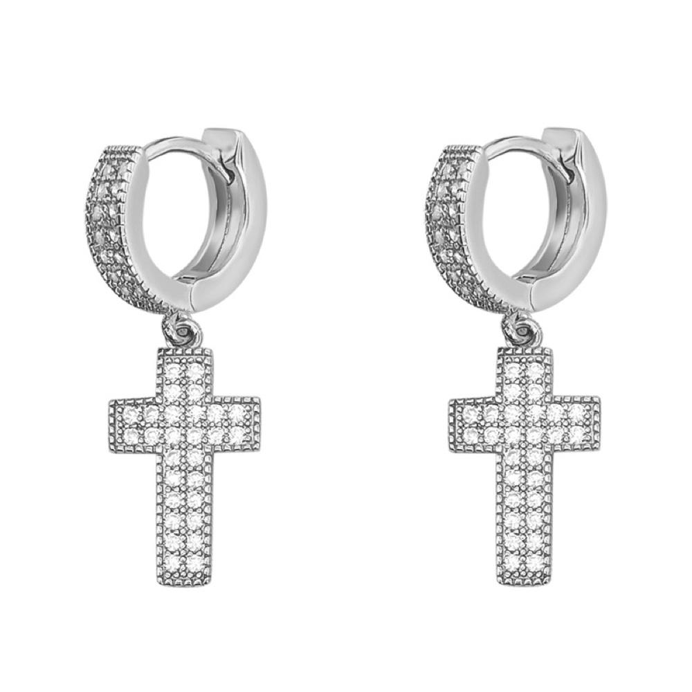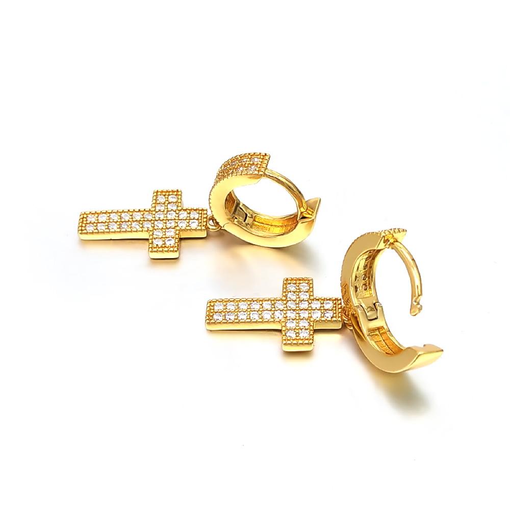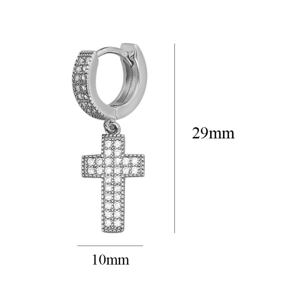 2 Row Tennis Cross Dangling Huggie Hoop Earrings .925 Silver. These beautiful unisex bling bling earrings are crafted from fine .925 Sterling Silver and Wrapped in Thick Layers of Yellow or White Gold. Each and every VVS Simulated Diamond stone is hand set with prongs. Intricately detailed design elements with precision stone setting. This is just one of many amazing iced out earrings from our all new 2020 .925 Sterling Silver Earring Collection.