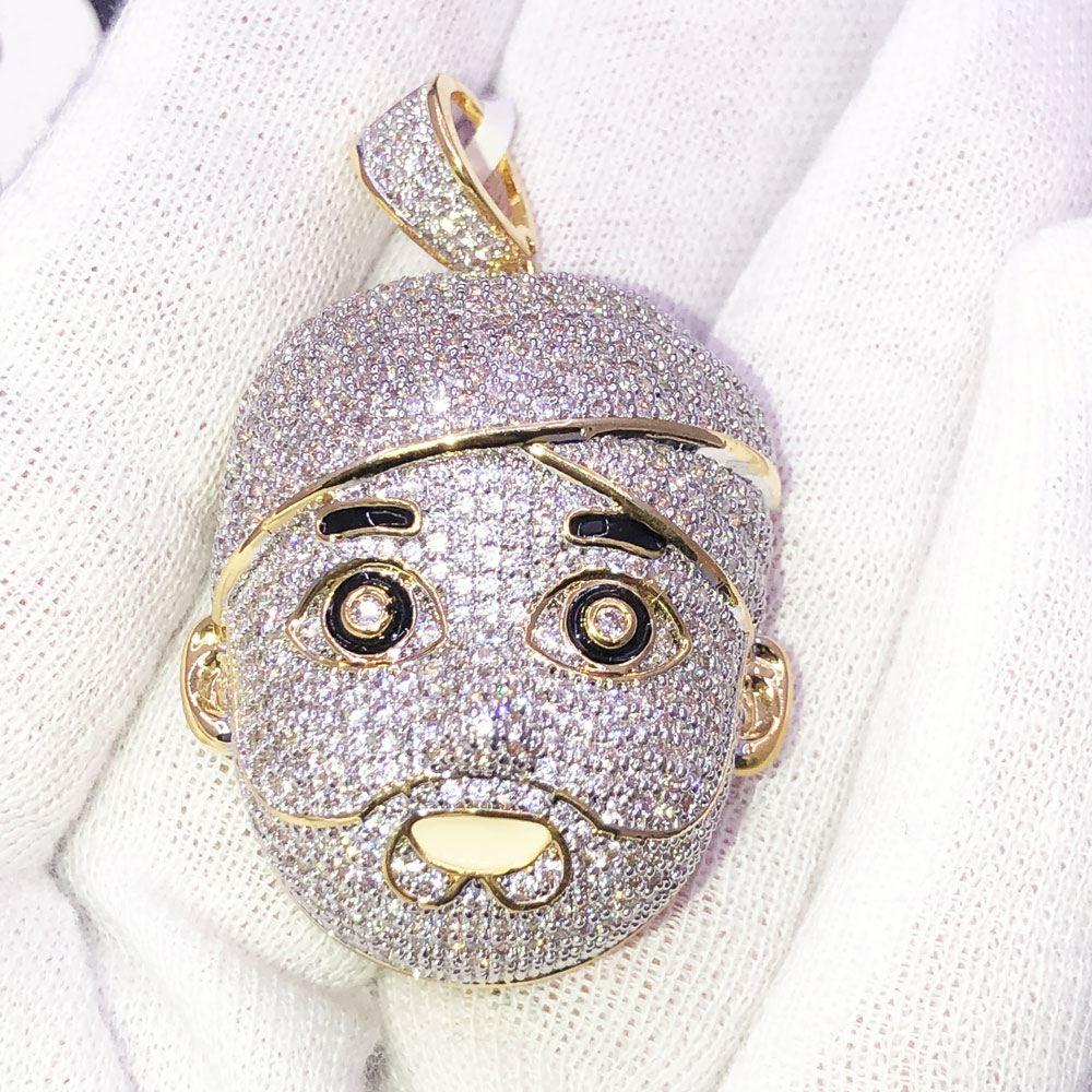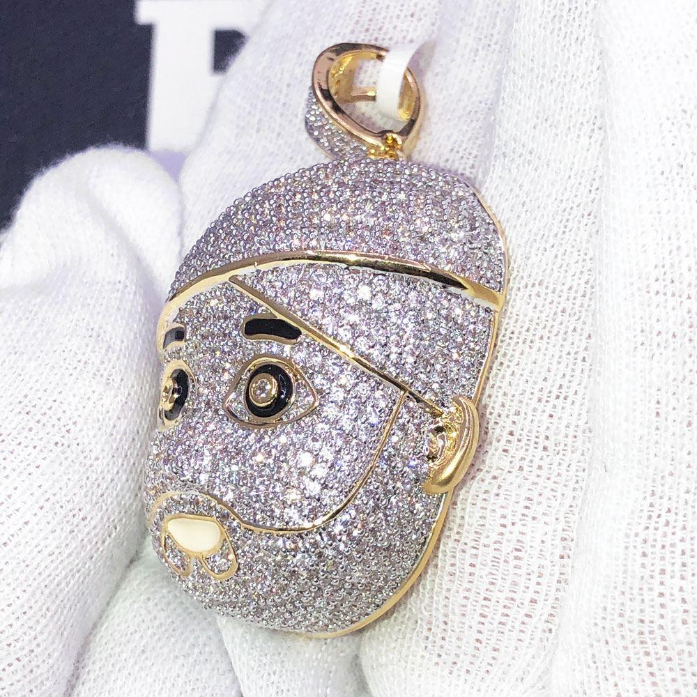 Face with Turbin CZ Hip Hop Bling Bling Pendant. Limited Edition Iced Out Hip Hop Pendant. Stones are VVS Simulated Diamonds Prong Set, the same way genuine diamond hip hop jewelry is made. Stand out from the crowd with this detailed quality made iced out pendant.