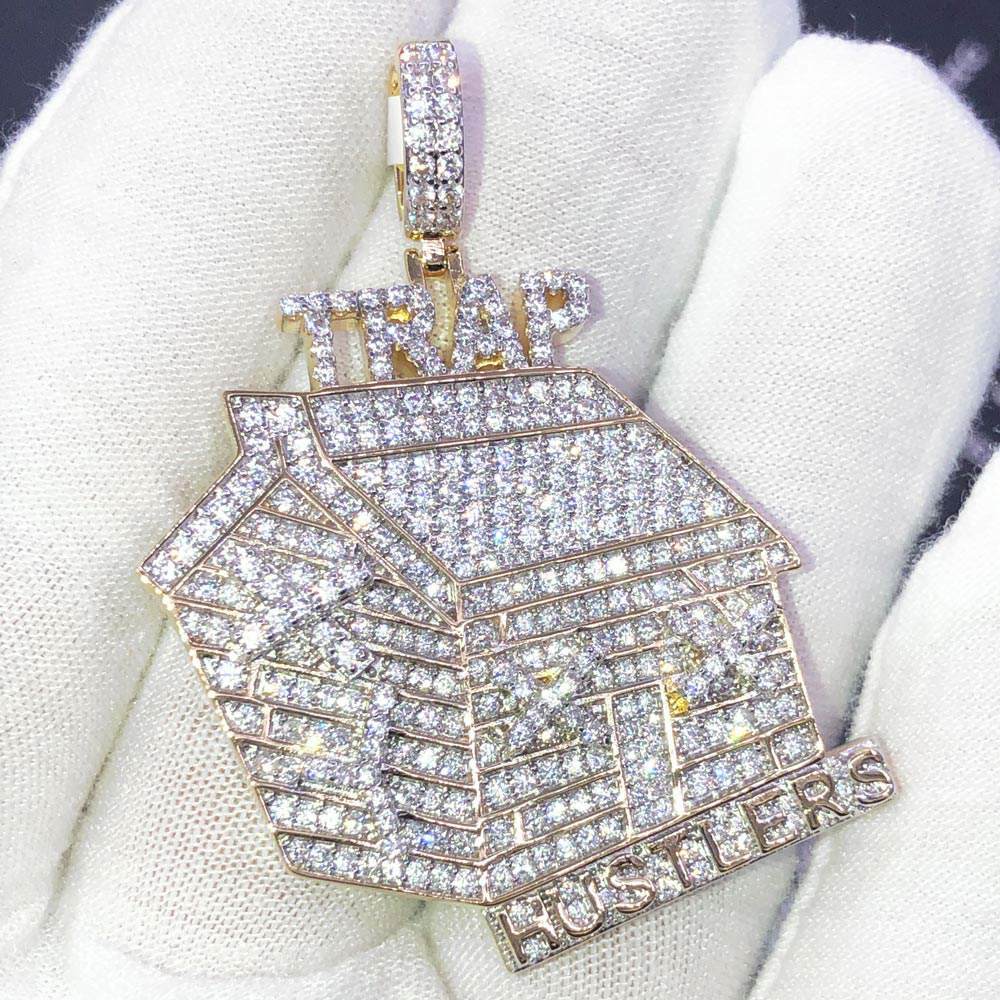 Trap Hustlers CZ Hip Hop Bling Bling Pendant. Limited Edition Iced Out Hip Hop Pendant. Stones are VVS Simulated Diamonds Prong Set, the same way genuine diamond hip hop jewelry is made. Stand out from the crowd with this this detailed quality made iced out pendant.