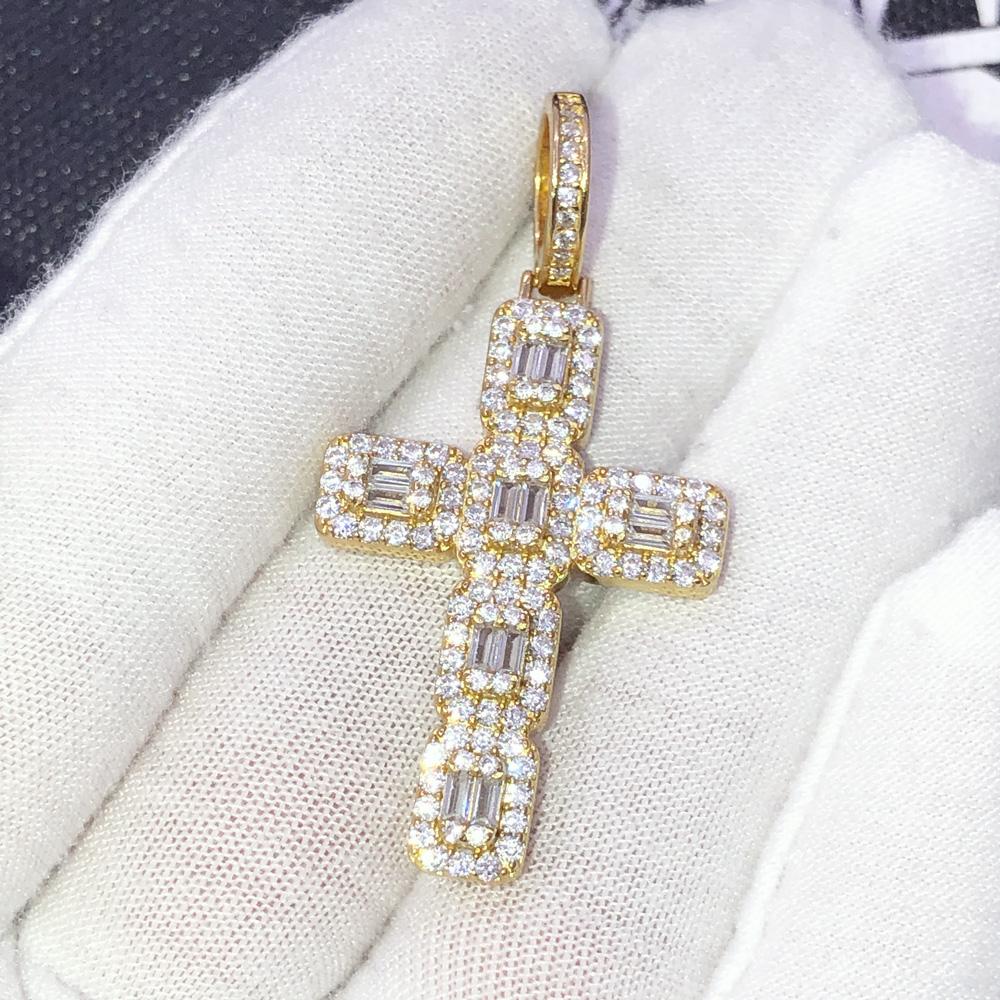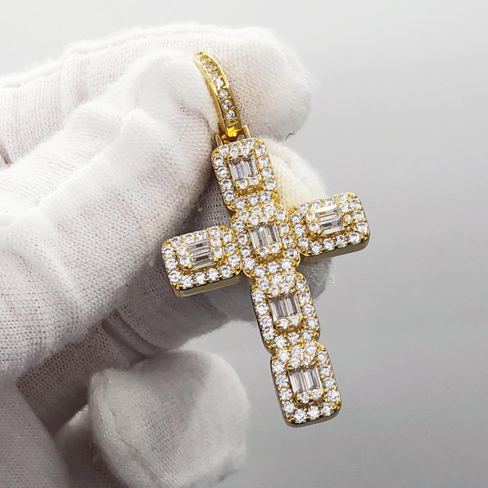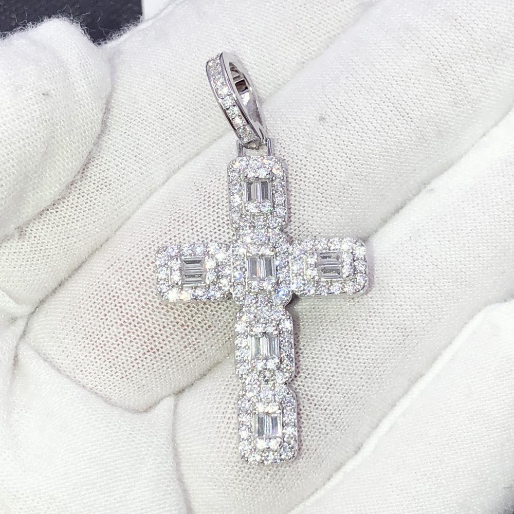 .925 Sterling Silver Skinny Baguette Cluster Cross VVS CZ Iced Out Pendant. Crafted from Solid .925 Sterling Silver with an incredible bling bling shine. Limited Edition Iced Out Hip Hop Pendant. Stones are VVS Simulated Diamonds Prong Set, the same way genuine diamond hip hop jewelry is made. Stand out from the crowd with this this detailed quality made iced out pendant.