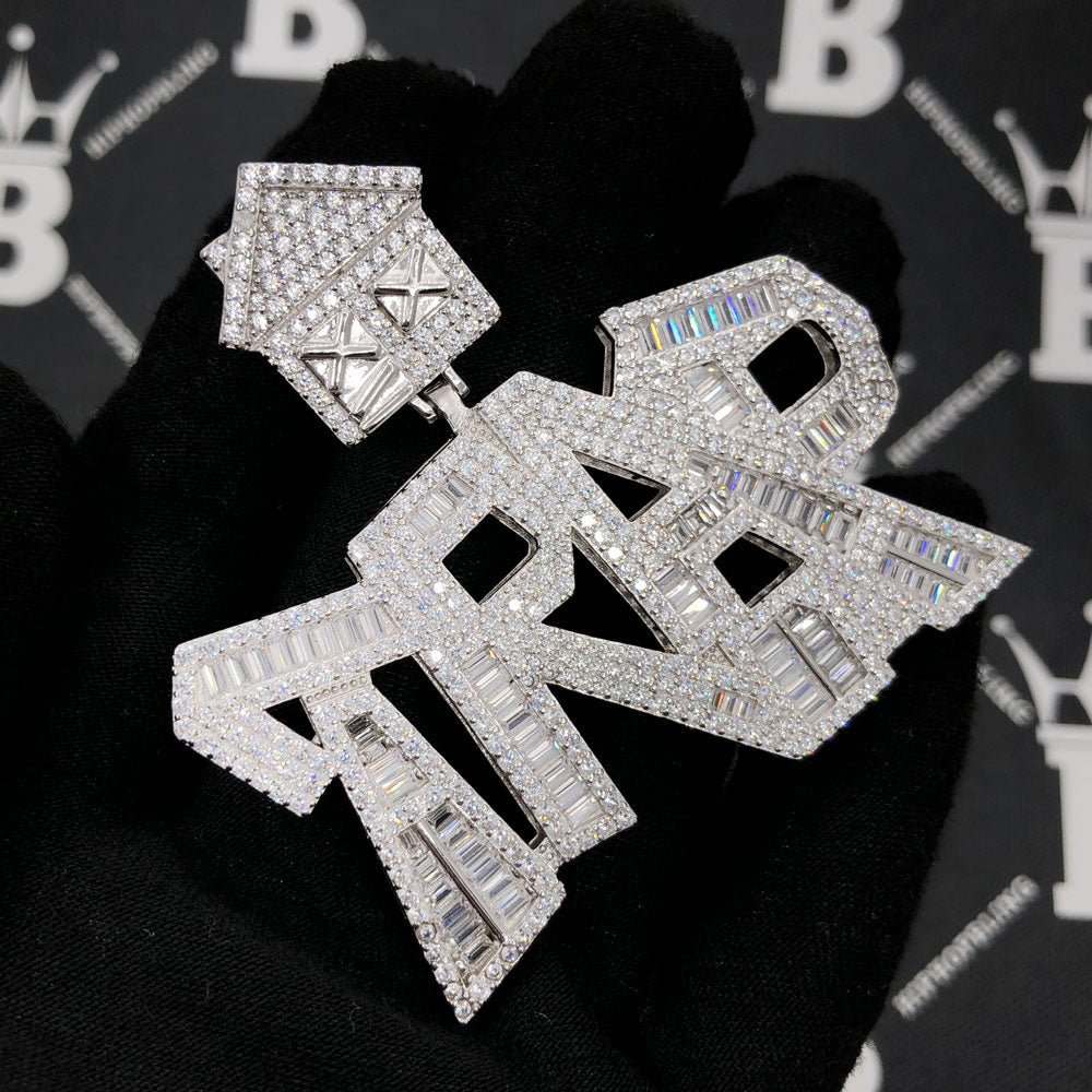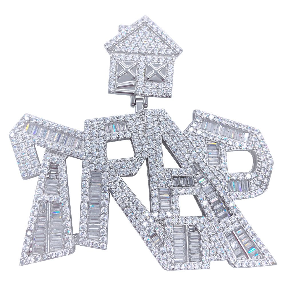 .925 Silver TRAP Baguette VVS CZ Iced Out Pendant.  Crafted from real Solid .925 Sterling Silver with an incredible bling bling shine.  Limited Edition Iced Out Hip Hop Pendant.  Stones are VVS Simulated Diamonds Prong Set, the same way genuine diamond hip hop jewelry is made.  Get the same look, feel and shine for less on real Silver.  Stand out from the crowd with this this detailed quality made iced out pendant.