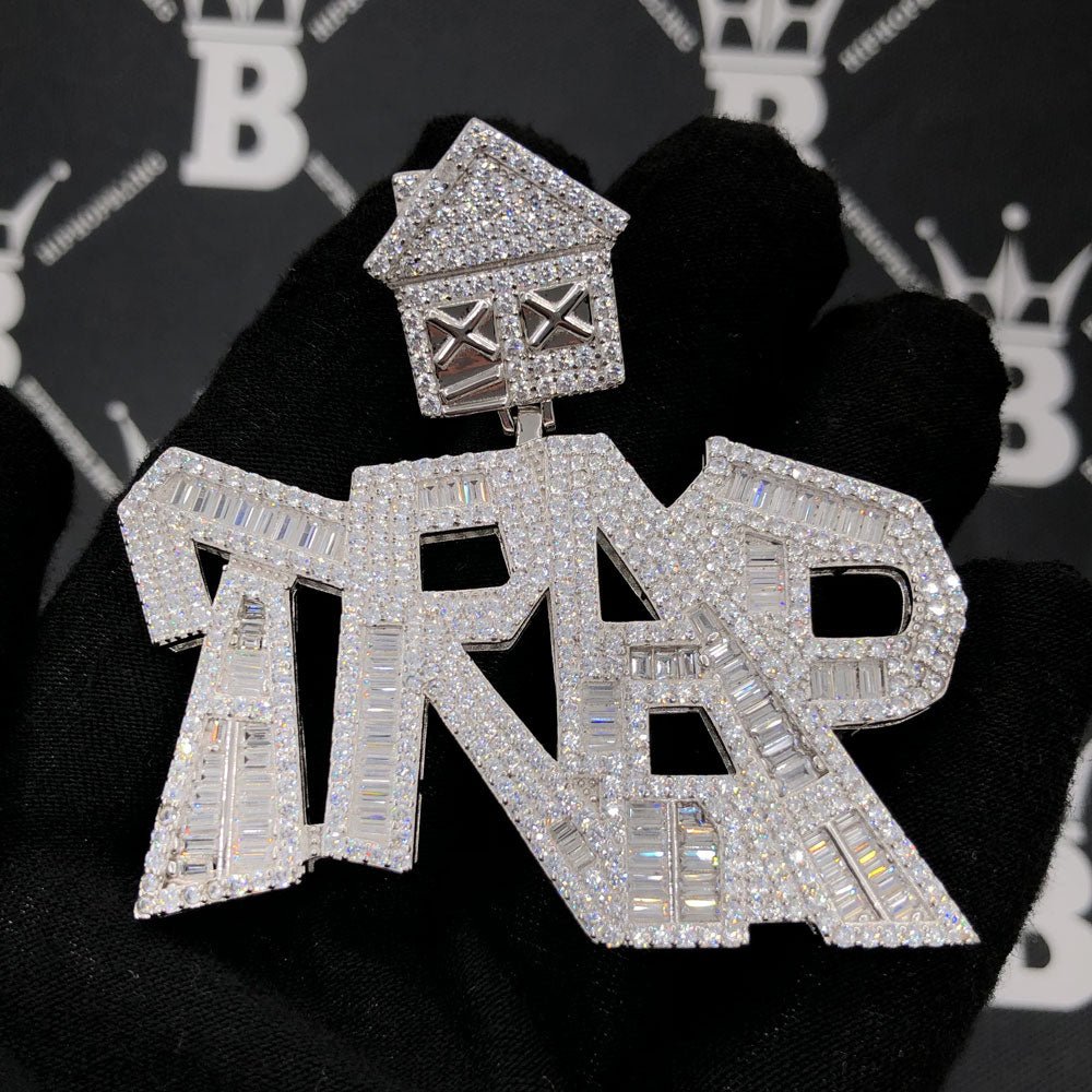 .925 Silver TRAP Baguette VVS CZ Iced Out Pendant