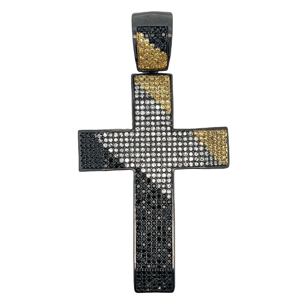 3 Color CZ Black Cross Iced Out Pendant. This hip hop pendant features round cut simulated diamond stones giving this bling bling charm a unique shine and look to it. Beautifully crafted with precision stone setting. Hot style iced out Pendant that is unique and stands out from the crowd. The VVS CZ Simulated Diamonds have a bling bling shine as if they were genuine diamonds.