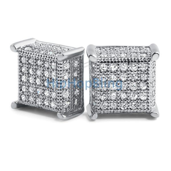 3D Box Micropave CZ Bling Bling Earrings. Get the maximum bling bling shine with these iced out earrings.  Quality crafted with intricate details. Stones are VVS Simulated Diamonds which are Prong Set and designed to perfection. Ice up your ears with these amazing hip hop earrings.  Order your Hip Hop Bling Earrings today.