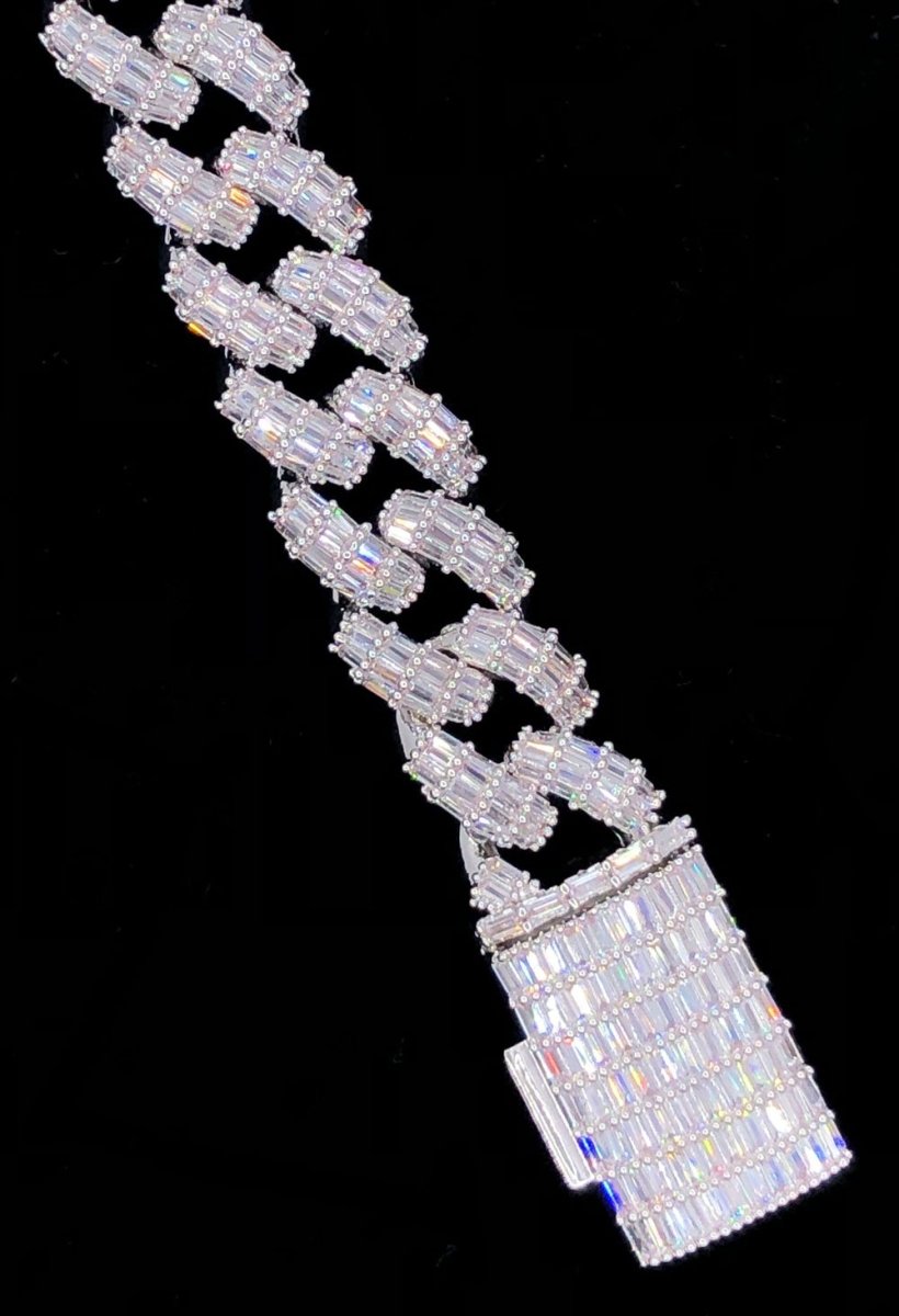 3D Baguette Cuban Link CZ Iced Out Hip Hop Bracelet. Classic and Unique Style Bling Bling Bracelet. Incredibly icy with VVS simulated diamond stones lighting up your wrist with the best shine possible. This iced out Bracelet shines like genuine diamonds. All hand setting, no glue. Hand Crafted to look, feel, and Shine Like Genuine Diamond Hip Hop Jewelry. Shine with the best hip hop jewels in the game.