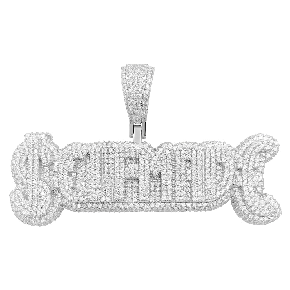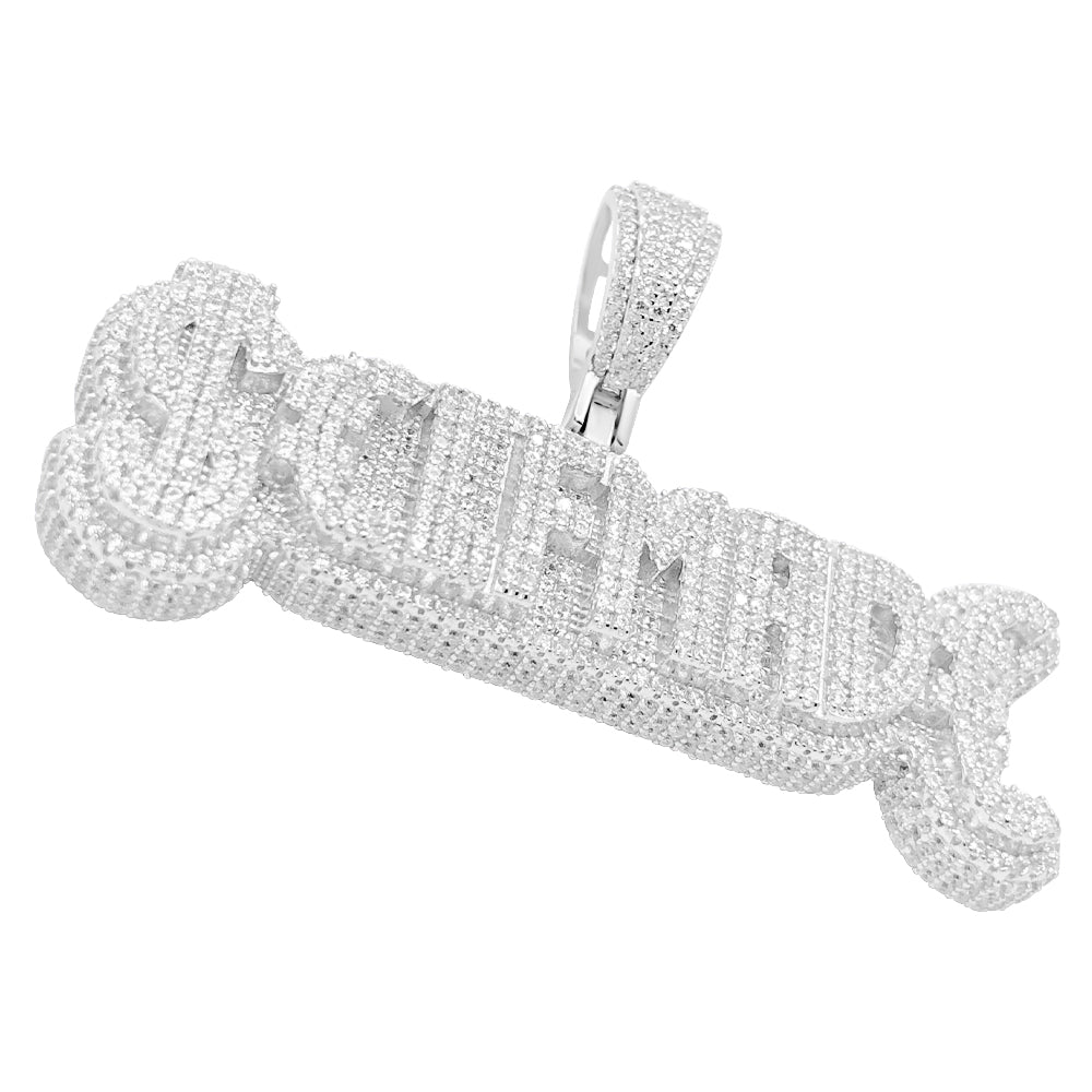 .925 Sterling Silver $ELFMADE Dollar & Euro Sign CZ Iced Out Pendant. Crafted from Solid .925 Sterling Silver with an incredible bling bling shine. Limited Edition Iced Out Hip Hop Pendant. Stones are VVS Simulated Diamonds Prong Set, the same way genuine diamond hip hop jewelry is made. Stand out from the crowd with this this detailed quality made iced out pendant.