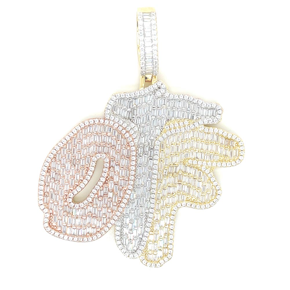 .925 Sterling Silver OTF 3 Tone Baguette VVS CZ Iced Out Pendant. Crafted from real Solid .925 Sterling Silver with an incredible bling bling shine. Limited Edition Iced Out Hip Hop Pendant. Stones are VVS Simulated Diamonds Prong Set, the same way genuine diamond hip hop jewelry is made. Get the same look, feel and shine for less on real Silver. Stand out from the crowd with this this detailed quality made iced out pendant.