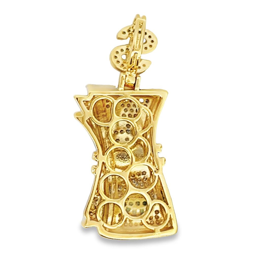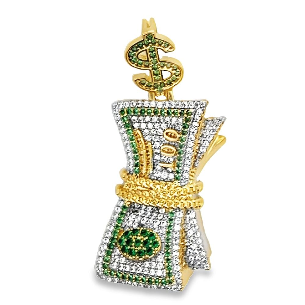Band of Hundreds Money CZ Hip Hop Iced Out Pendant. Limited Edition Iced Out Hip Hop Pendant. Stones are VVS Simulated Diamonds Prong Set, the same way genuine diamond hip hop jewelry is made. Stand out from the crowd with this this detailed quality made iced out pendant.