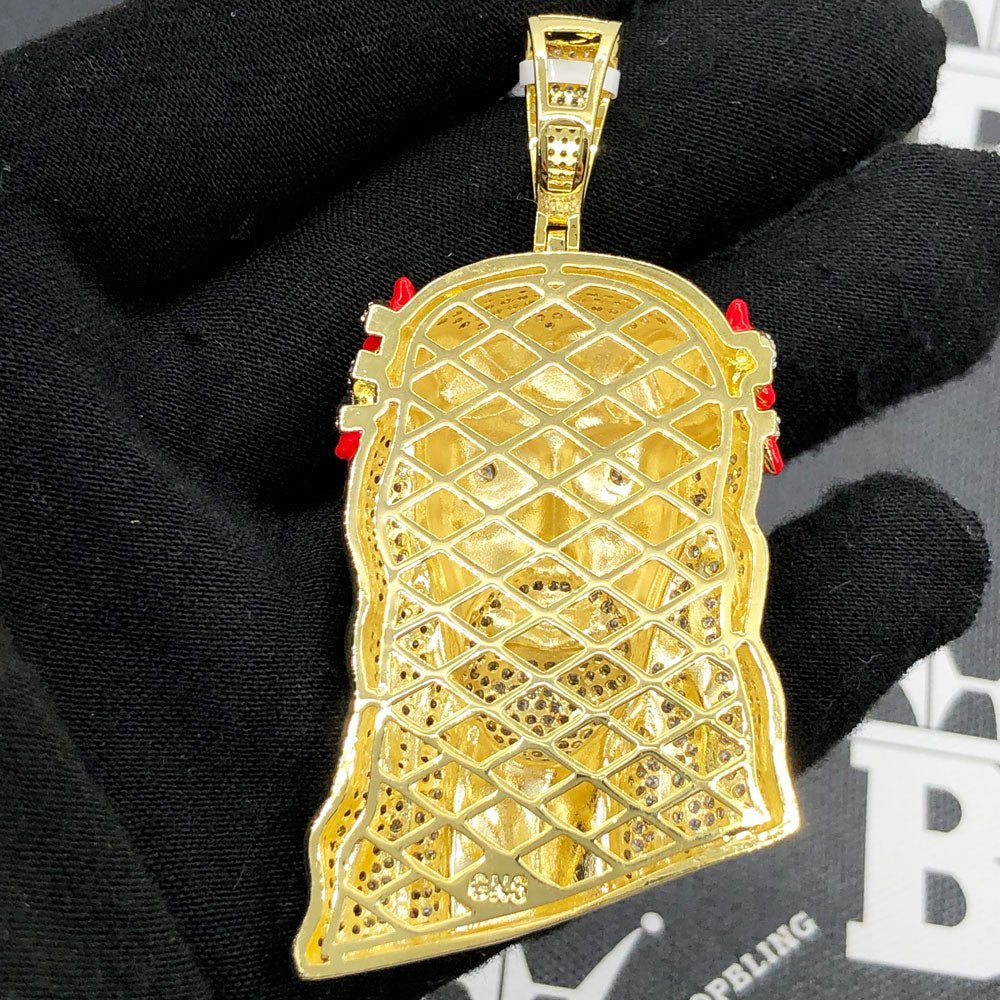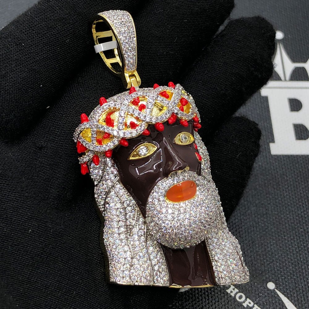 Black Face Jesus VVS CZ Hip Hop Bling Pendant. Unique Jesus piece pendant with painted enamel face. Limited Edition Iced Out Hip Hop Pendant. Stones are VVS Simulated Diamonds Prong Set, the same way genuine diamond hip hop jewelry is made. Stand out from the crowd with this this detailed quality made iced out pendant.