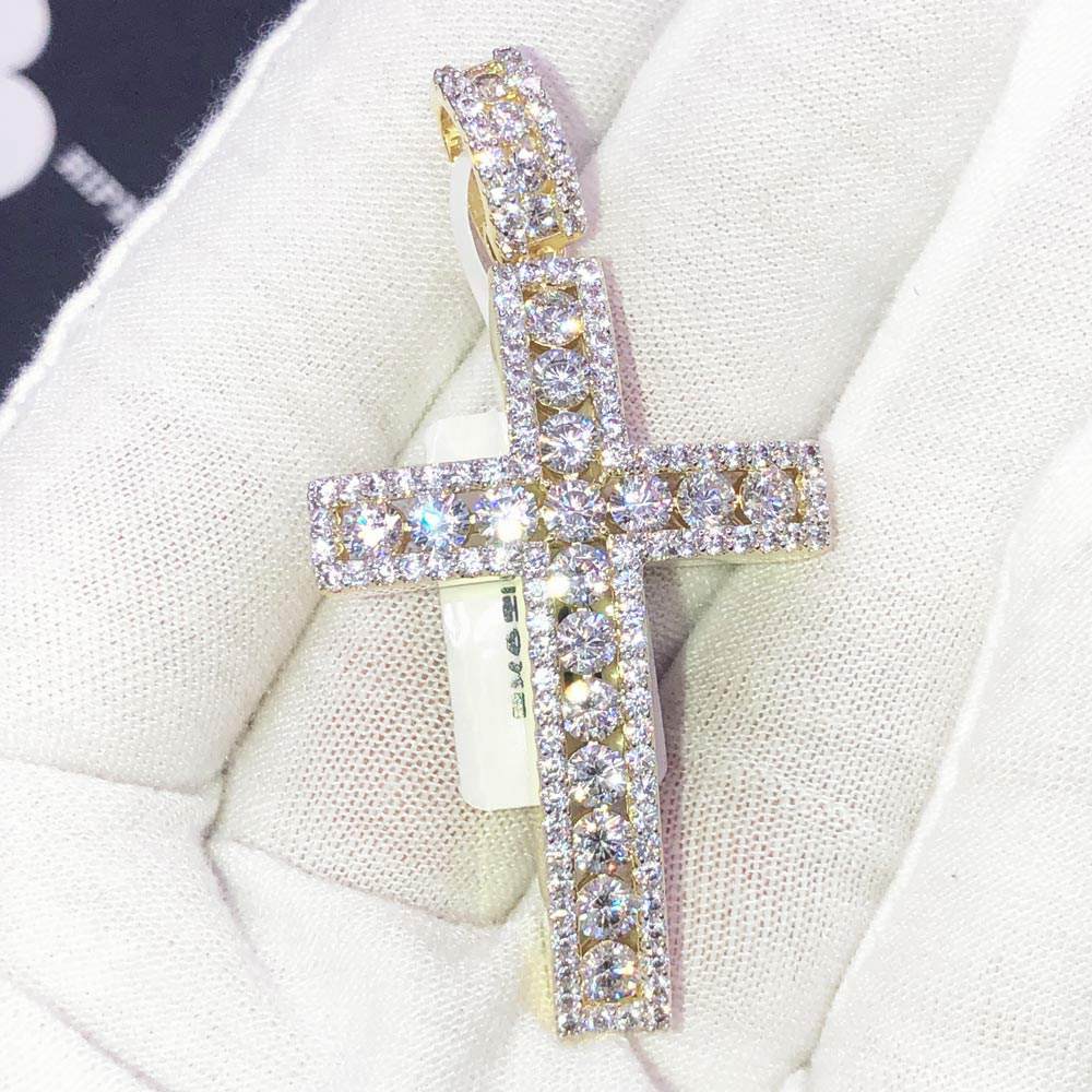 Channel Set Cross CZ Hip Hop Bling Bling Pendant. Limited Edition Iced Out Hip Hop Pendant. Stones are VVS Simulated Diamonds Prong Set, the same way genuine diamond hip hop jewelry is made. Stand out from the crowd with this this detailed quality made iced out pendant.