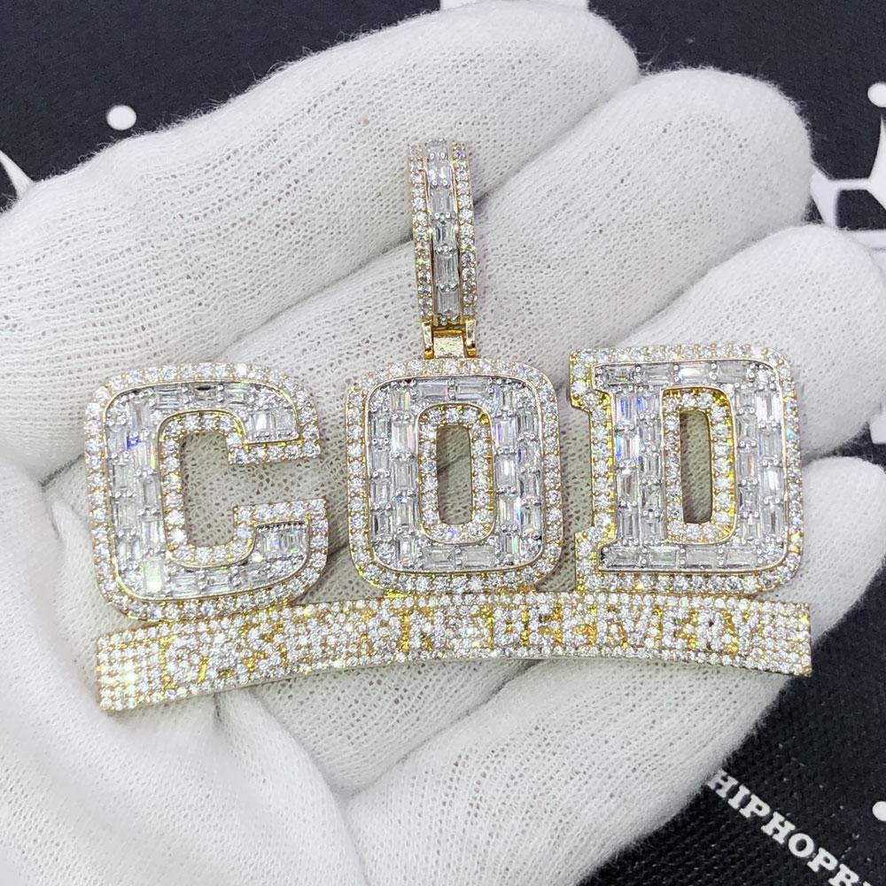 COD Cash on Delivery Baguette CZ Iced Out Pendant. Limited Edition Iced Out Hip Hop Pendant. Crafted with the finest detail using round cut and baguette cut stones that shine bright. Stones are VVS Simulated Diamonds Prong Set, the same way genuine diamond hip hop jewelry is made. Stand out from the crowd with this this detailed quality made iced out pendant.
