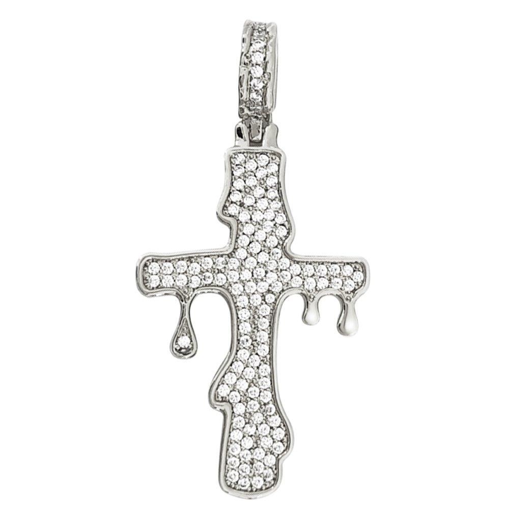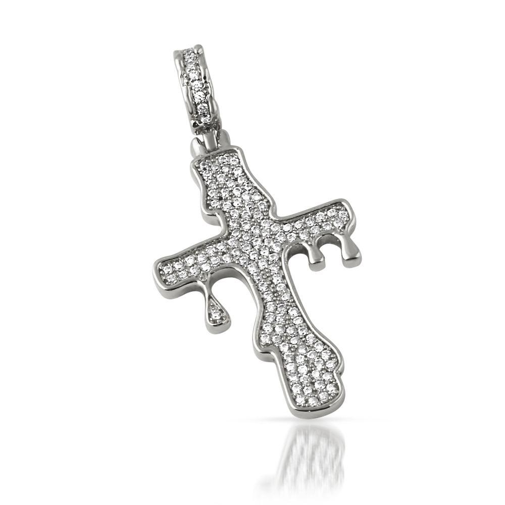 Drip Cross Gold CZ Bling Bling Pendant. This iced out simulated diamond pendant shines bright. Each stone is set with prongs, no glue! Elevate your swag and stand out from the crowd with this unique bling bling pendant around your neck. Get the bustdown look and feel of a real diamond hip hop pendant for a fraction of the cost. Quality finish and craftsmanship that is made to last. Shine better and order today.