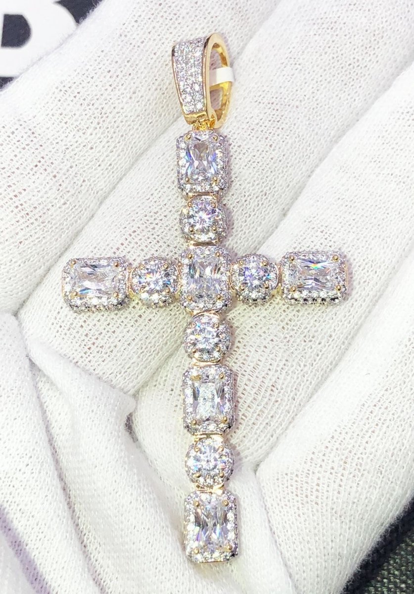 Exotic Gem Cluster Cross VVS CZ Hip Hop Iced Out Pendant. Limited Edition Iced Out Hip Hop Pendant. Stones are VVS Simulated Diamonds Prong Set, the same way genuine diamond hip hop jewelry is made. Stand out from the crowd with this detailed quality made iced out pendant.