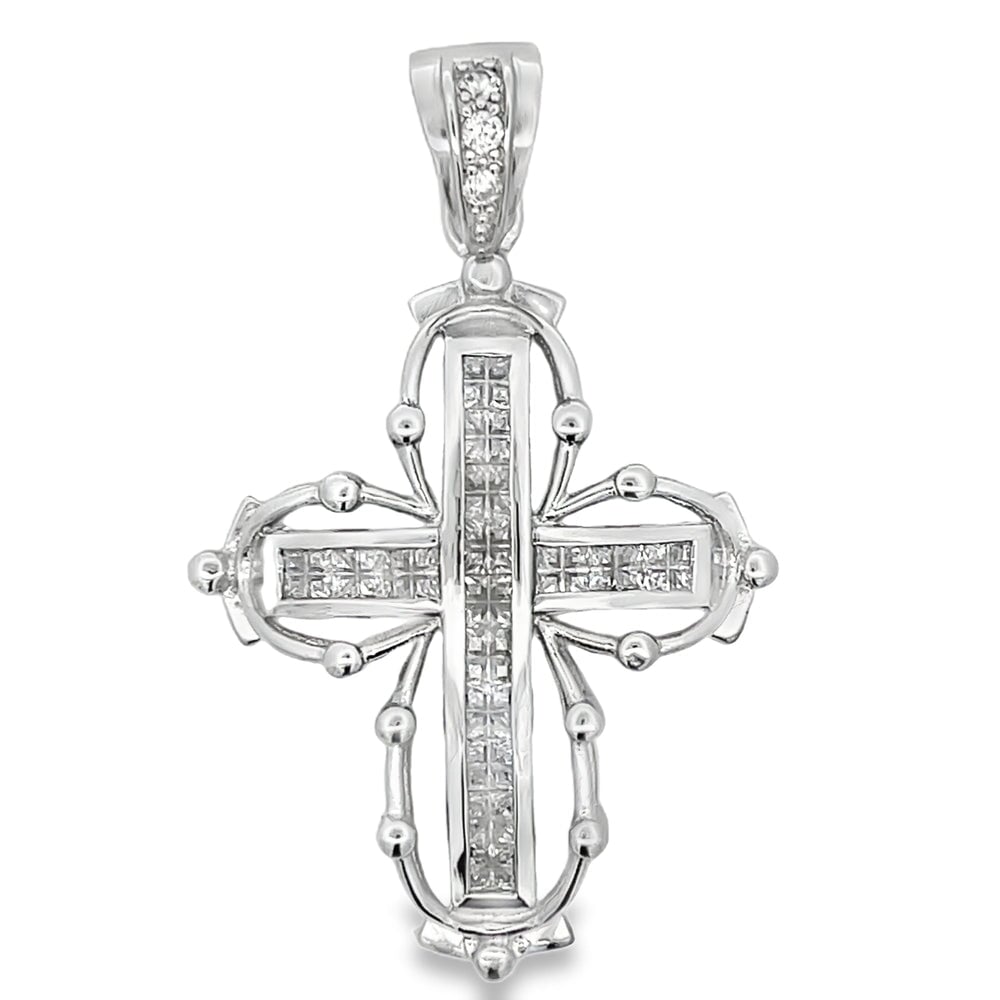 Halo Princess Cross CZ Pendant .925 Sterling Silver. Quality crafted hip hop bling pendant. Crafted from fine .925 Sterling Silver and wrapped to look and feel like solid Gold at a fraction of the cost. Prong set CZ Cubic Zirconia stones, set with precision gives this iced out pendant a beautiful and bright bling bling shine. A must have in your hip hop jewelry collection.