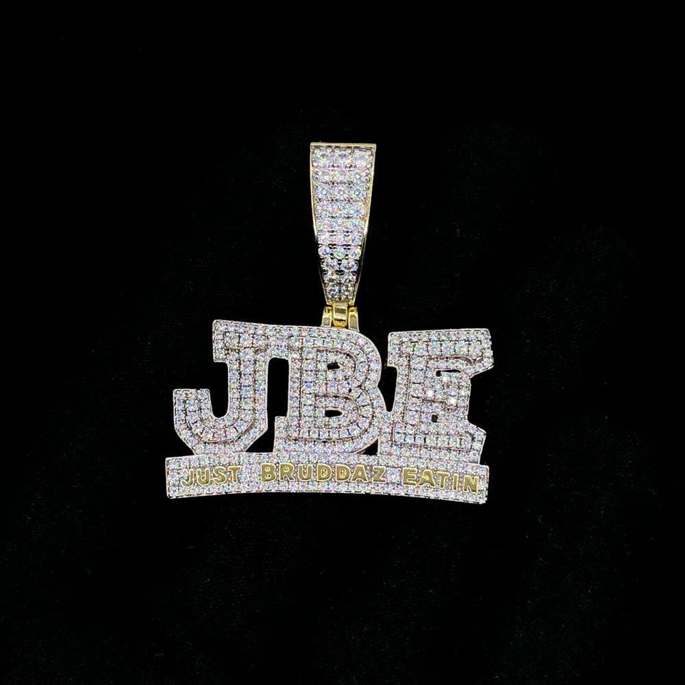 JBE Just Bruddaz Eatin CZ Hip Hop Bling Bling Pendant. Limited Edition Iced Out Hip Hop Pendant. Stones are VVS Simulated Diamonds Prong Set, the same way genuine diamond hip hop jewelry is made. Stand out from the crowd with this this detailed quality made iced out pendant.