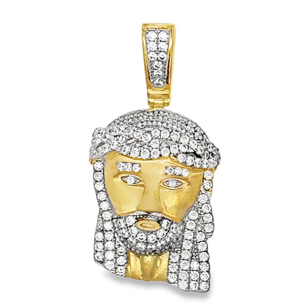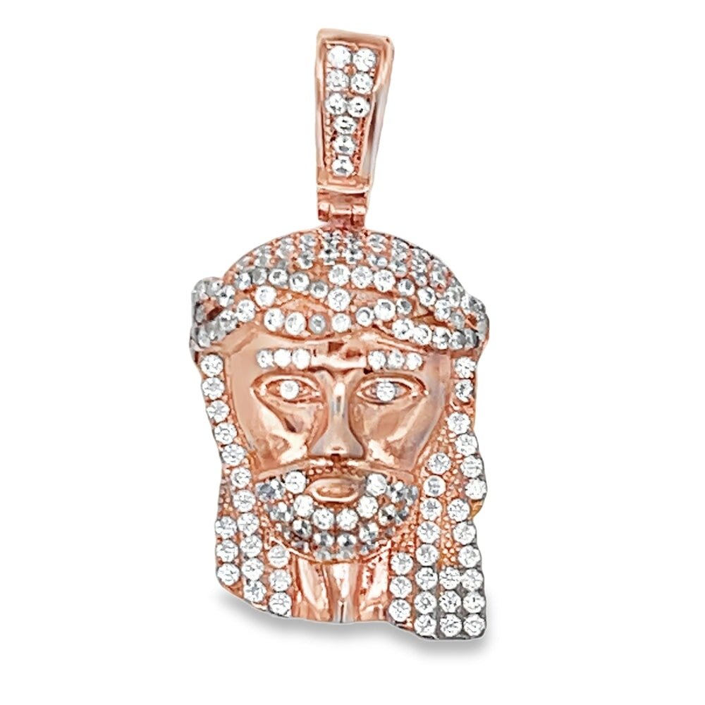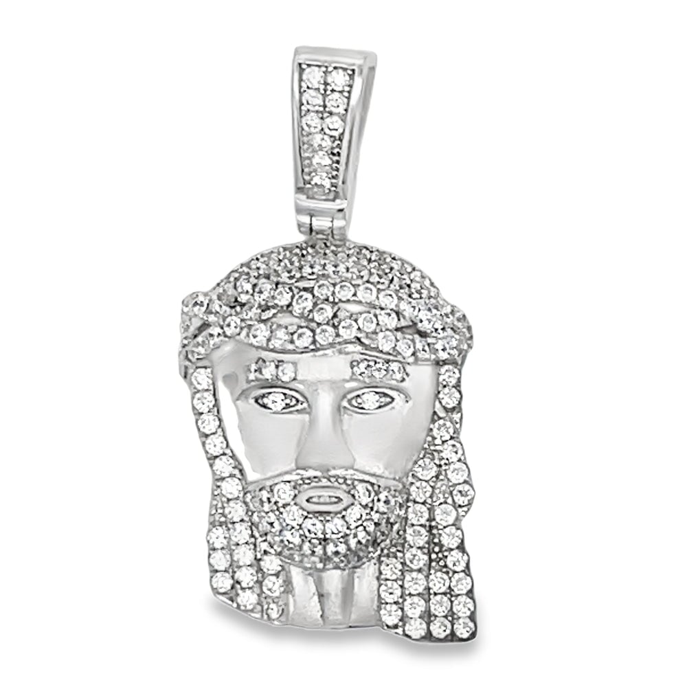 Mini Jesus CZ Pendant .925 Sterling Silver. Quality crafted hip hop bling pendant. Crafted from fine .925 Sterling Silver and wrapped to look and feel like solid Gold at a fraction of the cost. Prong set CZ Cubic Zirconia stones, set with precision gives this iced out pendant a beautiful and bright bling bling shine. A must have in your hip hop jewelry collection.