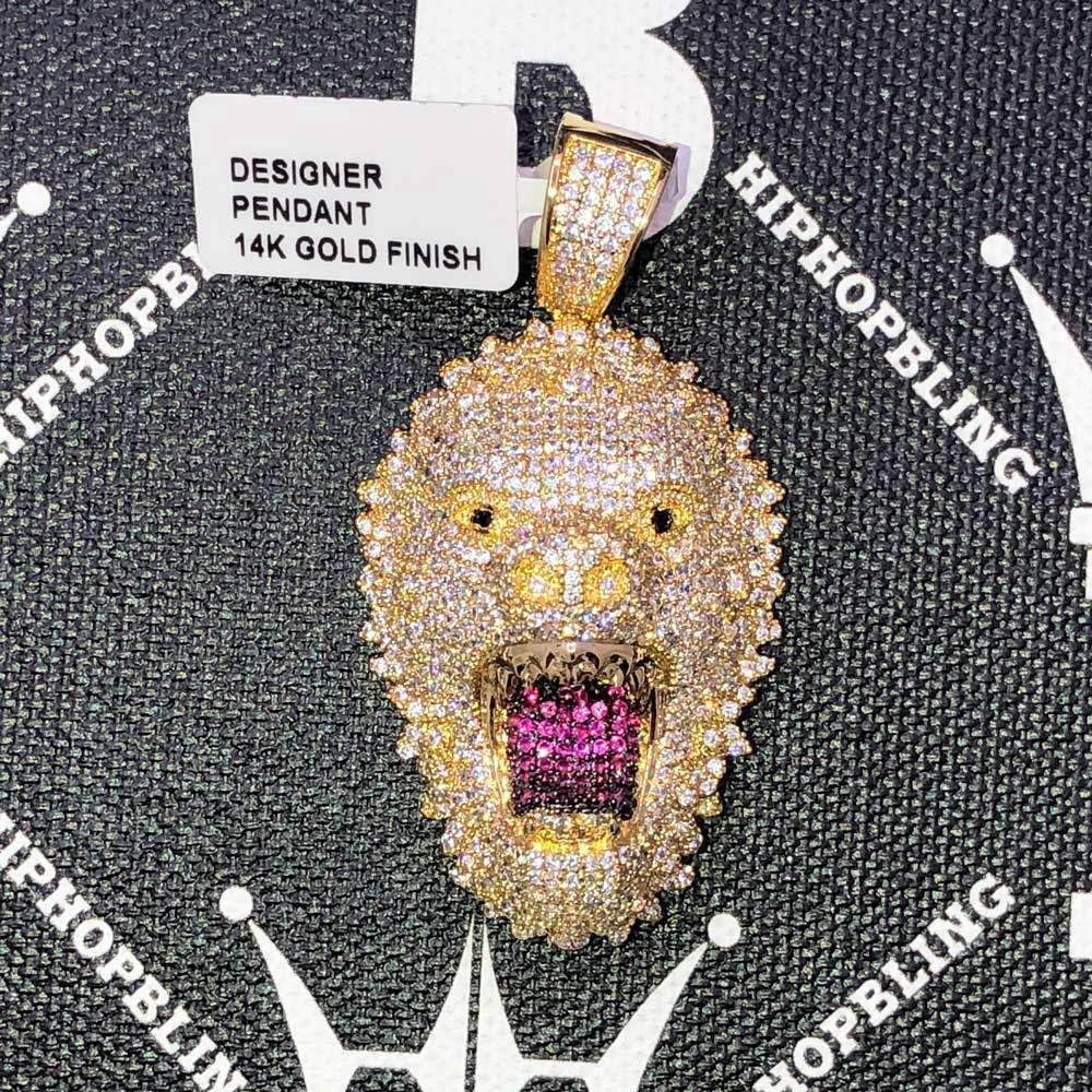 Wild Animal CZ Hip Hop Bling Bling Pendant.  Limited Edition Iced Out Hip Hop Pendant.  Stones are VVS Simulated Diamonds Prong Set, the same way genuine diamond hip hop jewelry is made.  Stand out from the crowd with this this detailed quality made iced out pendant.