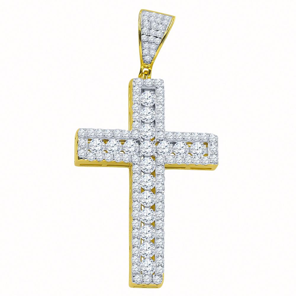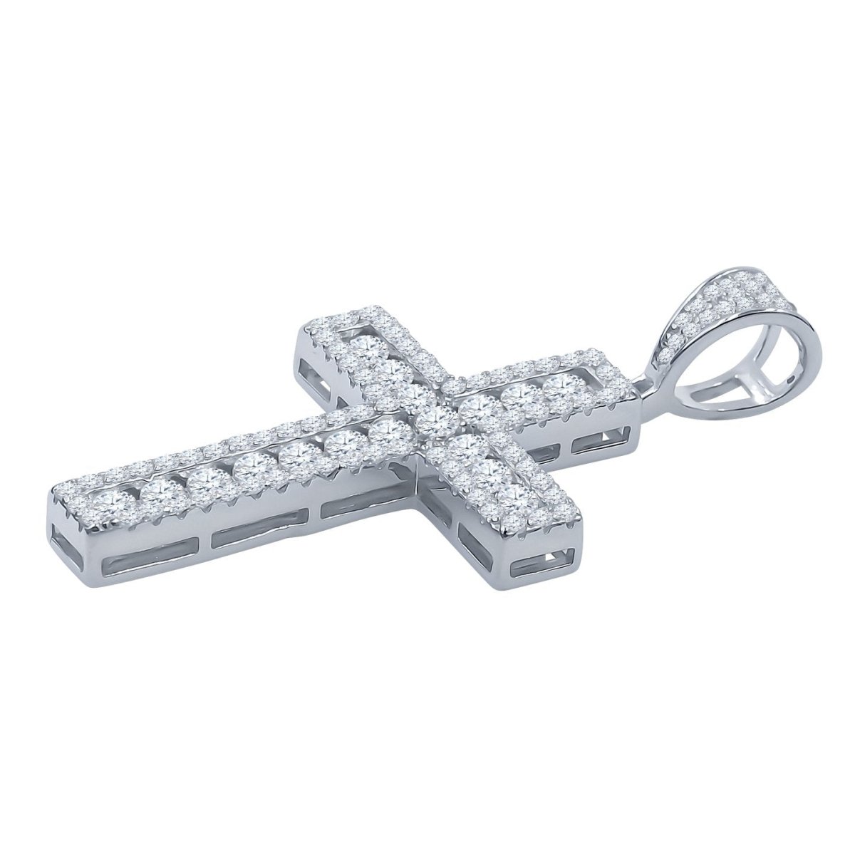 Channel Set Center Cross CZ Iced Out Pendant .925 Sterling Silver. Crafted from Solid .925 Sterling Silver with an incredible bling bling shine. Limited Edition Iced Out Hip Hop Pendant. Stones are VVS Simulated Diamonds Prong Set, the same way genuine diamond hip hop jewelry is made. Stand out from the crowd with this this detailed quality made iced out pendant.