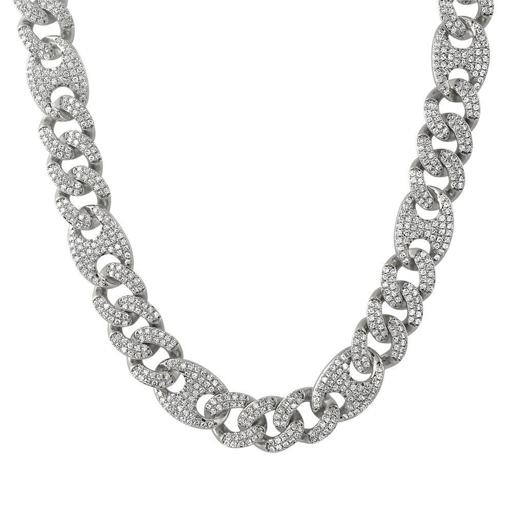 Cuban Mariner Link CZ Bling Bling Iced Out Chain. This uniquely crafted chain models the Figaro Pattern with Cuban Links and the Marine Links replacing the standard oval links. Top quality Simulated Diamonds and bold style that will keep you shining in the club and other exclusive events. Highly detailed with intricate details and stone setting. All stones are VVS Simulated Diamonds that are prong set.