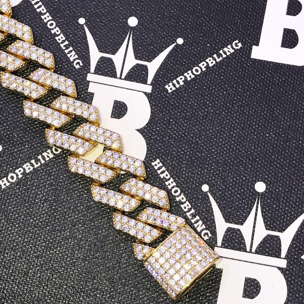 19MM Turkish Cuban Link Iced Out Hip Hop Bracelet. Classic and Unique Style Bling Bling Bracelet. Iced at all angles!!! Incredibly icy with VVS simulated diamond stones lighting up your wrist with the best shine possible. This iced out Bracelet shines like genuine diamonds. All hand setting, no glue. Hand Crafted to look, feel, and Shine Like Genuine Diamond Hip Hop Jewelry. We can custom make in 10K and 14K Solid Gold with Real Diamonds. Shine with the best hip hop jewels in the game.