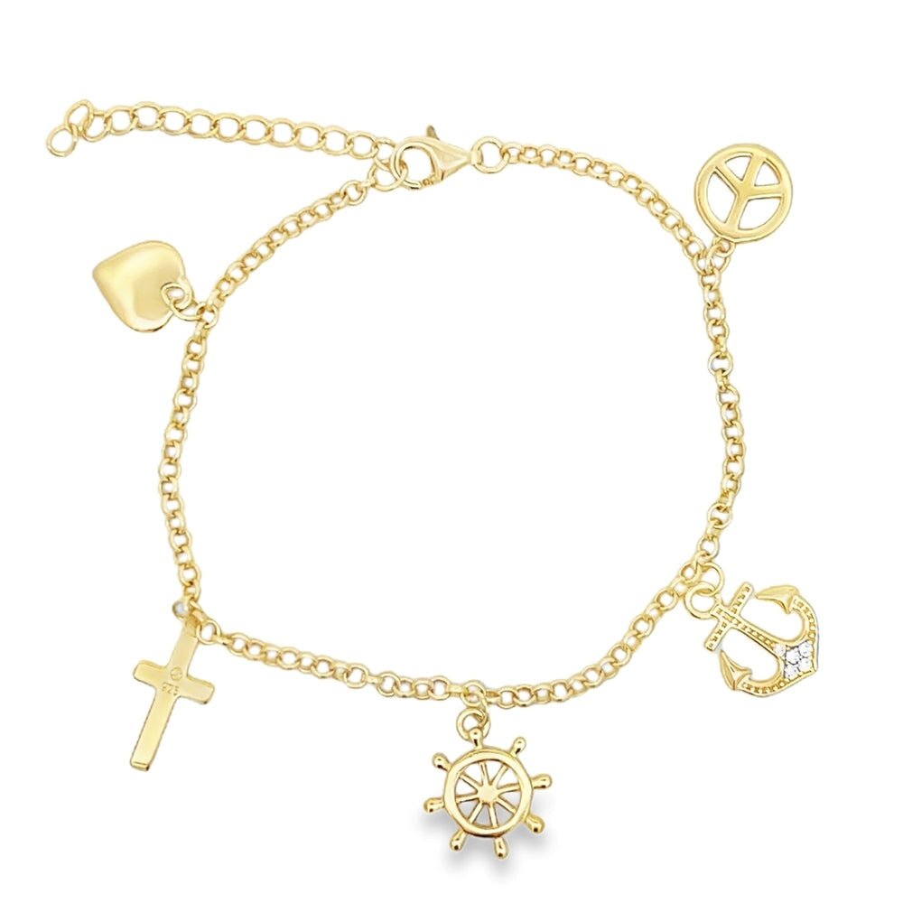 Peace & Love Charm Bracelet .925 Sterling Silver.  Quality crafted hip hop bling bracelet.  Crafted from fine .925 Sterling Silver and wrapped to look and feel like solid Gold at a fraction of the cost. A must have in your hip hop jewelry collection.