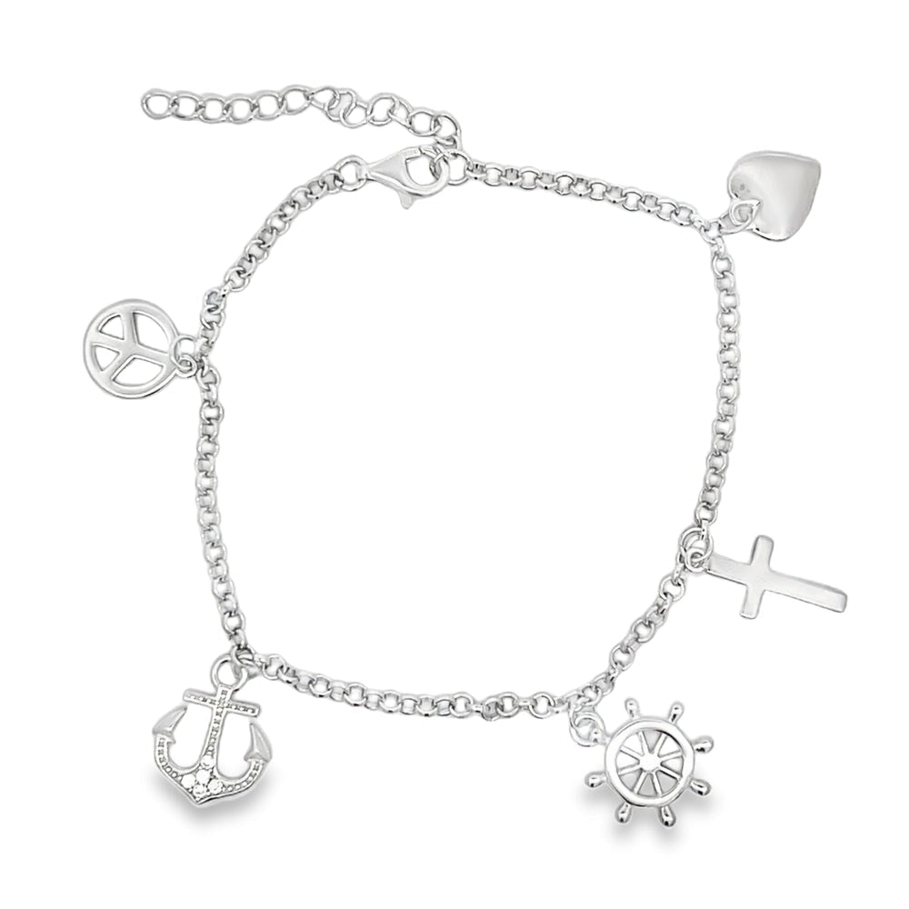 Peace & Love Charm Bracelet .925 Sterling Silver