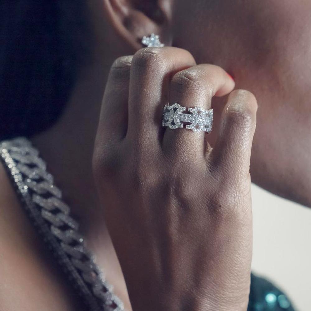 .925 Sterling Silver Byzantine CZ Hip Hop Bling Ring