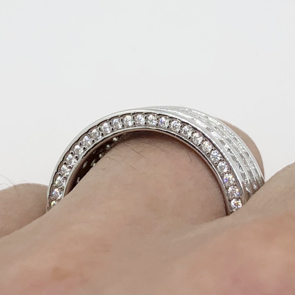 Triple Row CZ Eternity Band Bling Bling Ring in Rhodium