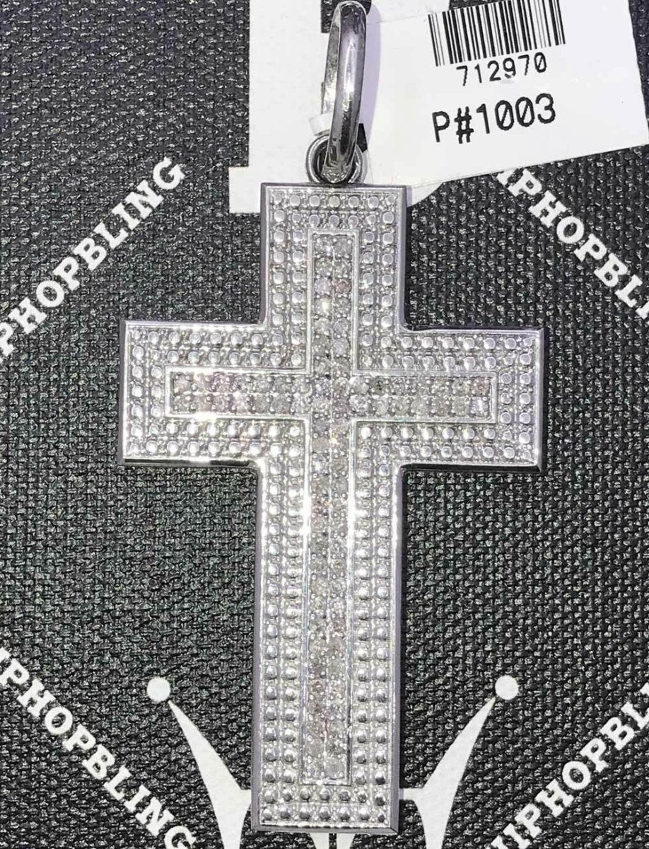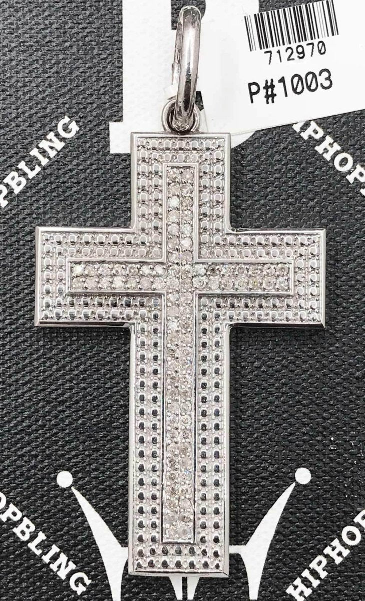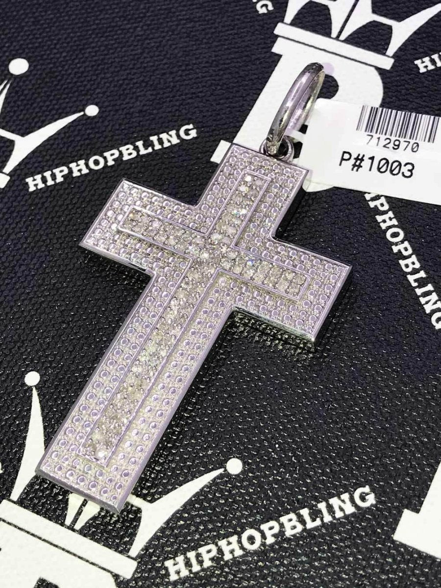 3.40cttw Diamond Double Thick Hip Hop Cross Pendant .925 Silver. This Iced out diamond cross is crafted from .925 Sterling Silver and covered in Micro Pave set white diamonds. Shine like a millionaire rap star with this all real diamond hip hop cross. All real diamond hip hop jewelry.