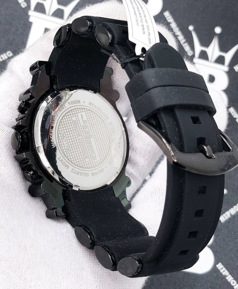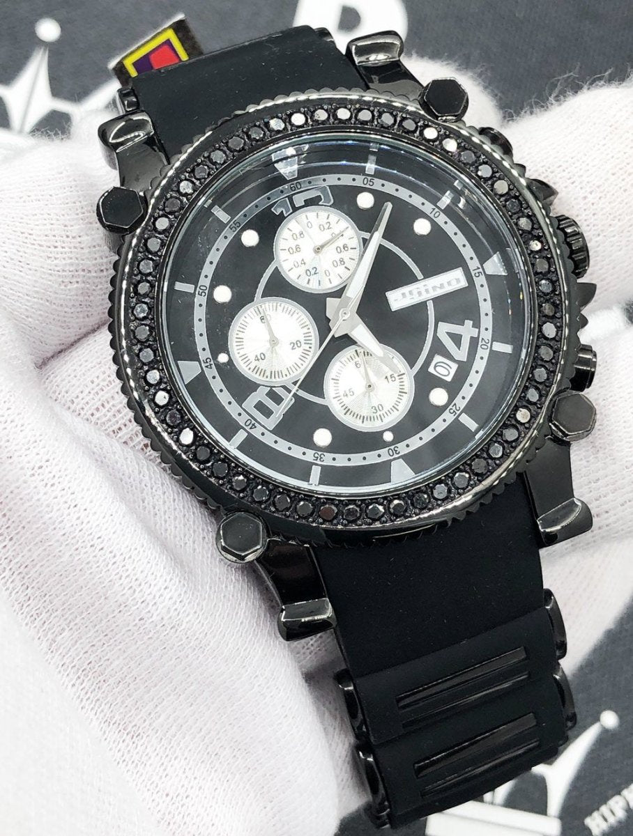 Rubber Strap 2.25 Carat Black Diamond Hip Hop Watch JoJino