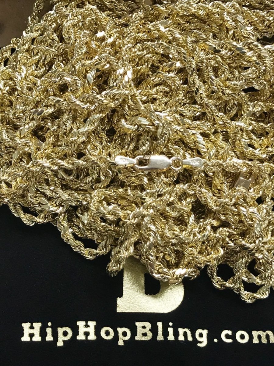 10K Yellow Gold Diamond Cut French Rope Chain. Crafted from Solid 10K Yellow Gold and then Diamond Cut for extra shine. Lightweight made to get you a bigger look for less money.