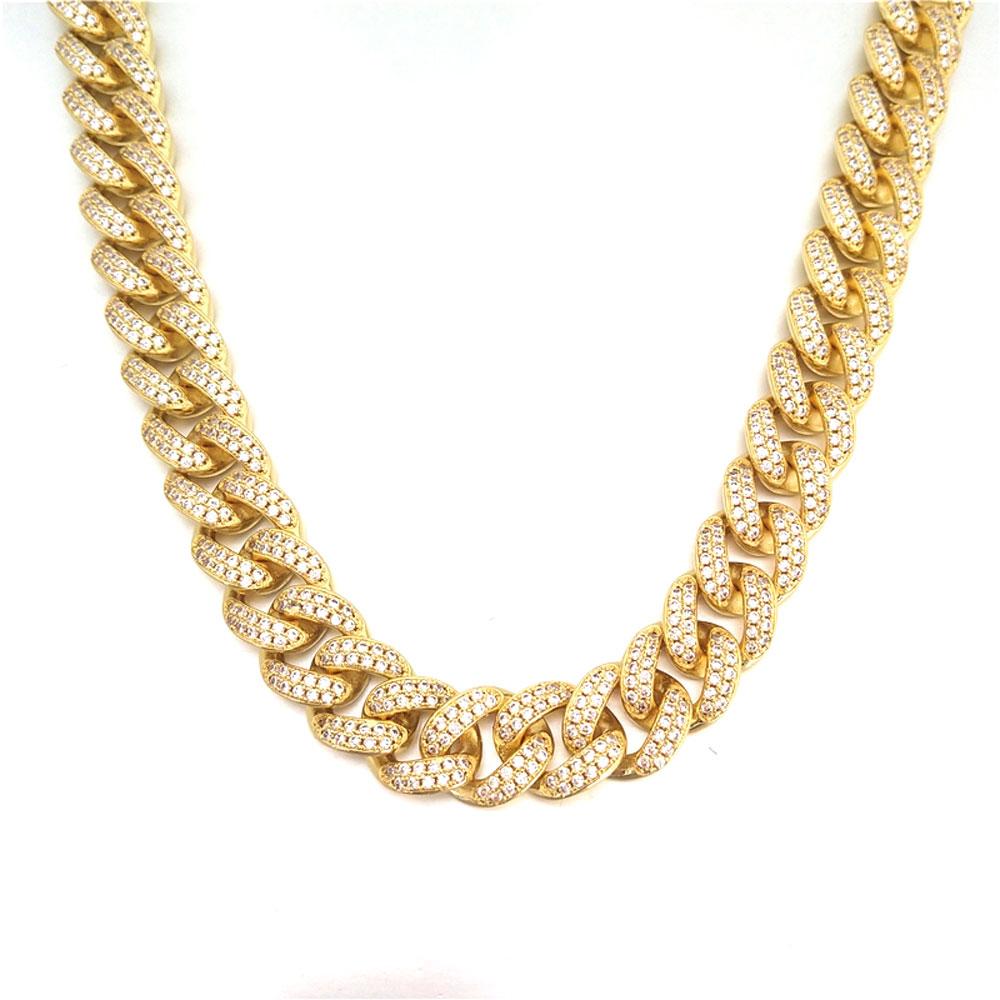 HIPHOPBLING Cuban Chain 12MM Wide. Classic Iced Out Cuban Chain with a big and Bold Bling Bling Shine. Highly detailed with intricate details and stone setting. All stones are VVS Simulated Diamonds that are prong set. HIPHOPBLING offers the Best in Hip Hop Jewelry Since 2003.