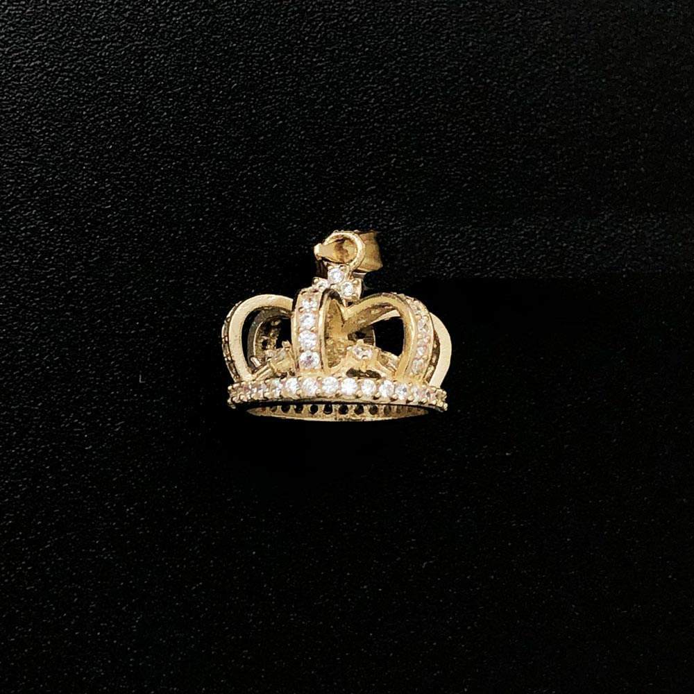 3D Royal Crown CZ 10K Yellow Gold Pendant