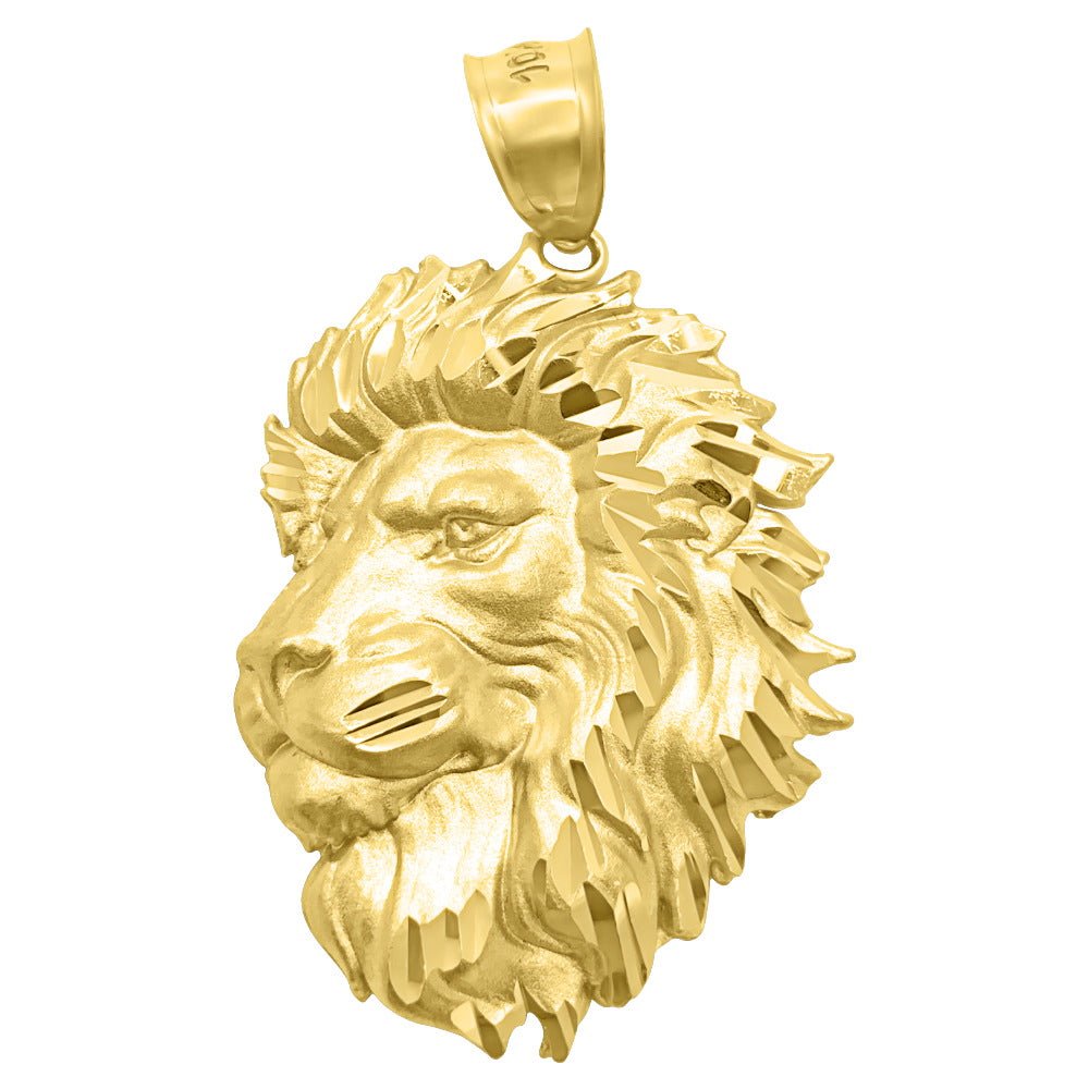 Lion Head Profile Large DC 10K Yellow Gold Pendant. Crafted from Solid 10K Yellow Gold and intricately detailed. Diamond cut for added sparkle. All real solid 10K Gold quality made at an affordable price.