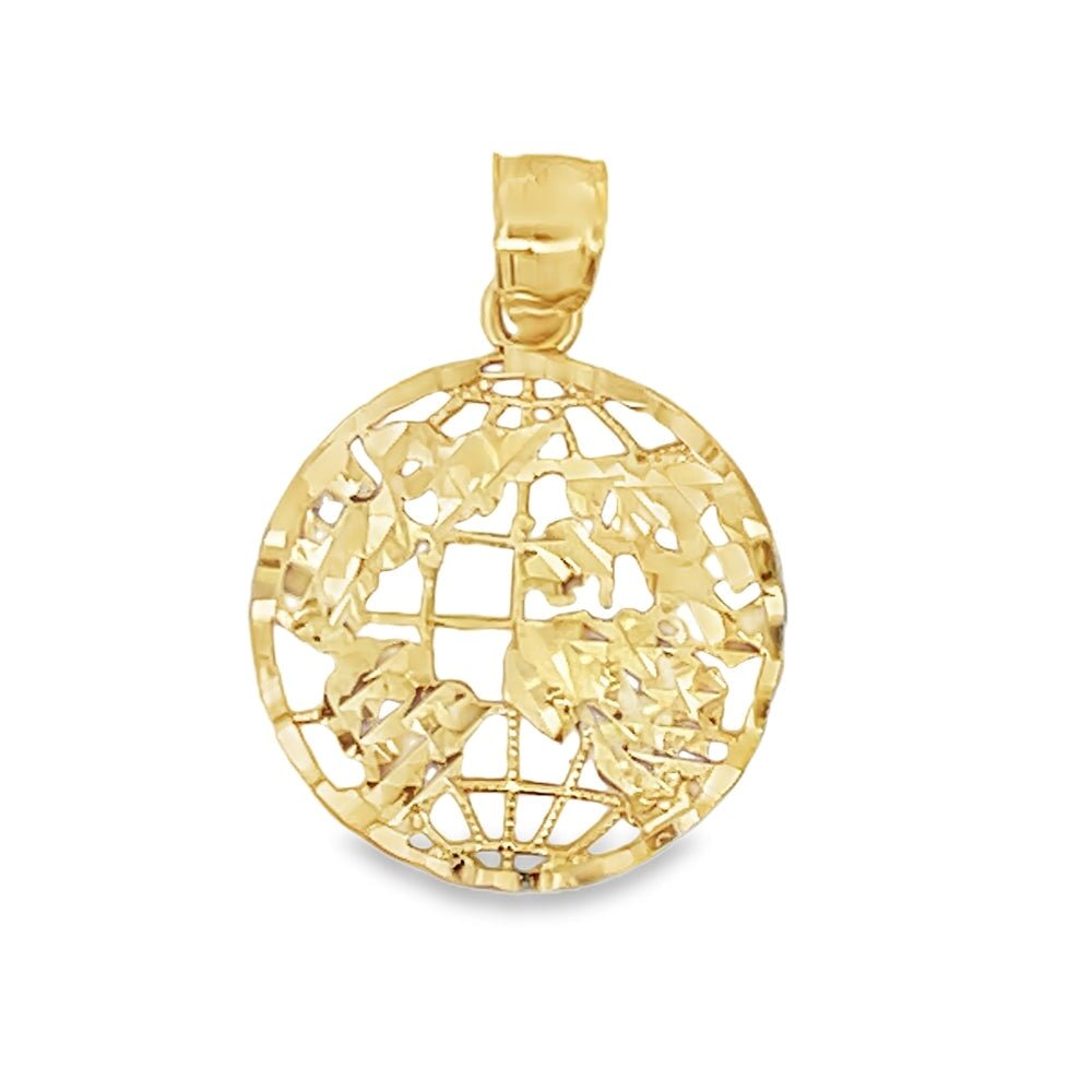 World Map Grid 10K Yellow Gold Pendant. Crafted from Solid 10K Yellow Gold and intricately detailed with Diamond Cuts for added sparkle. All real solid 10K Gold quality made at an affordable price.