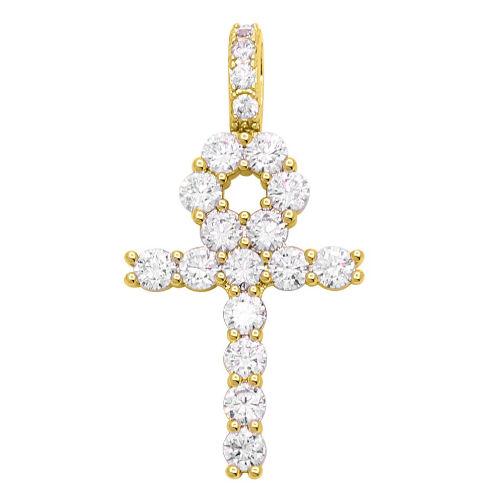 Tennis Ankh Cross Hip Hop Bling Bling Pendant. Unique Sharp Looking Cross with Rich Details and a solid back. Incredible bling bling shining hip hop jewelry. Beautifully crafted with precision stone setting. Quality Crafted Hip Hop bling bling Pendant that is available in Yellow Gold or White Gold Plating options. The VVS CZ Simulated Diamonds have a bling bling shine as if they were genuine diamonds.