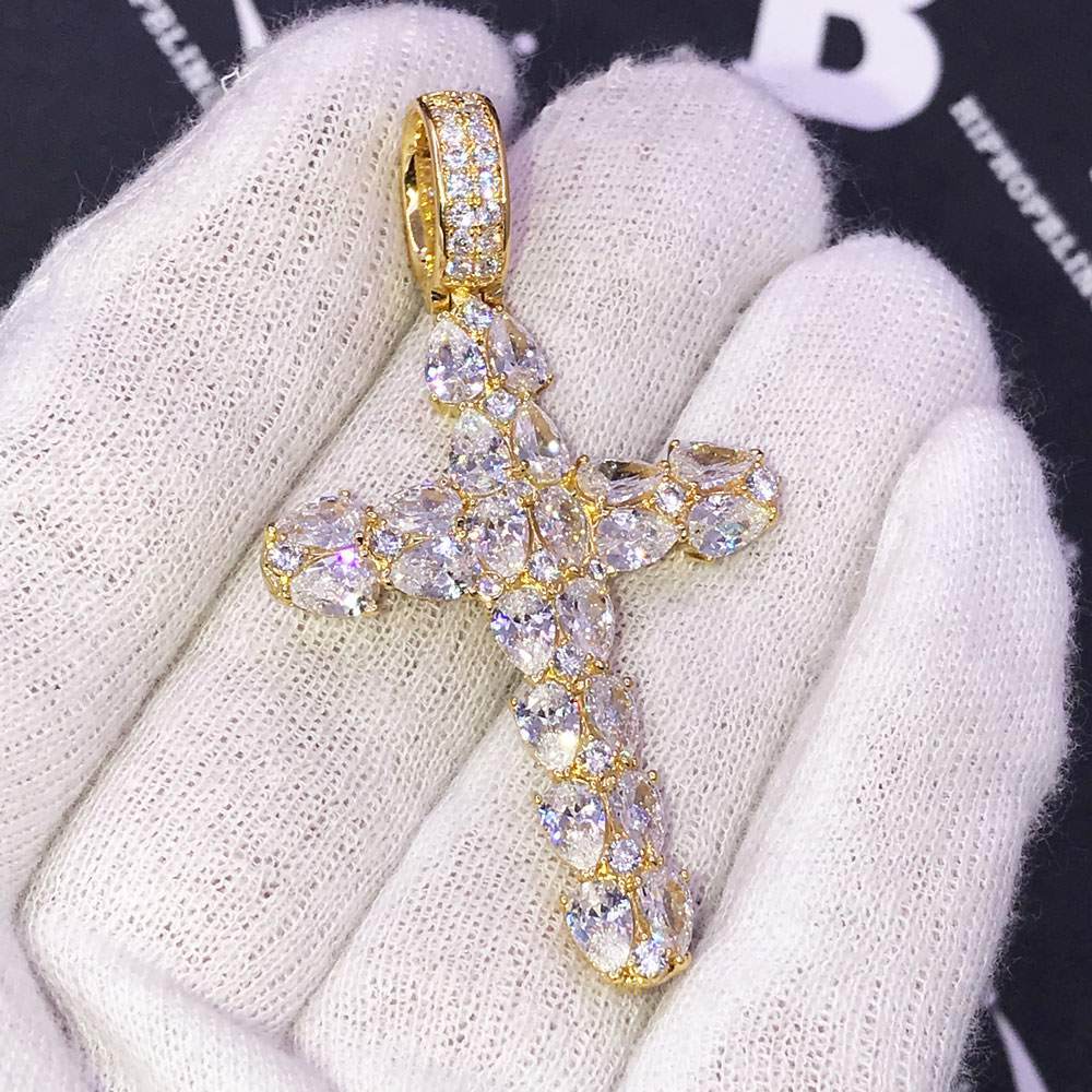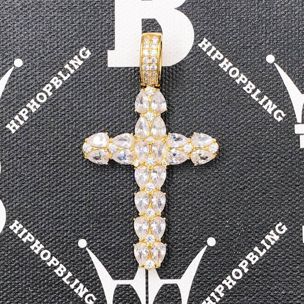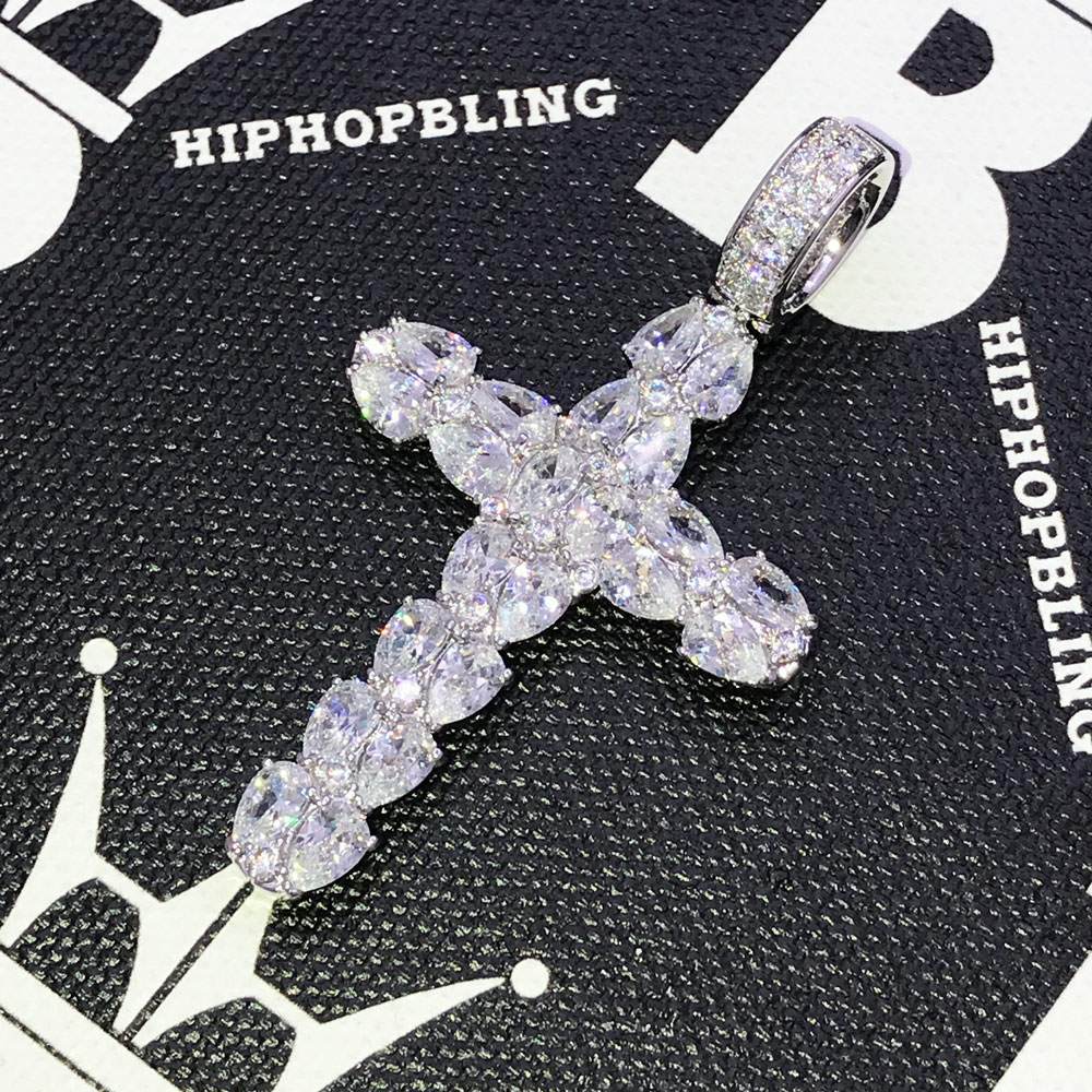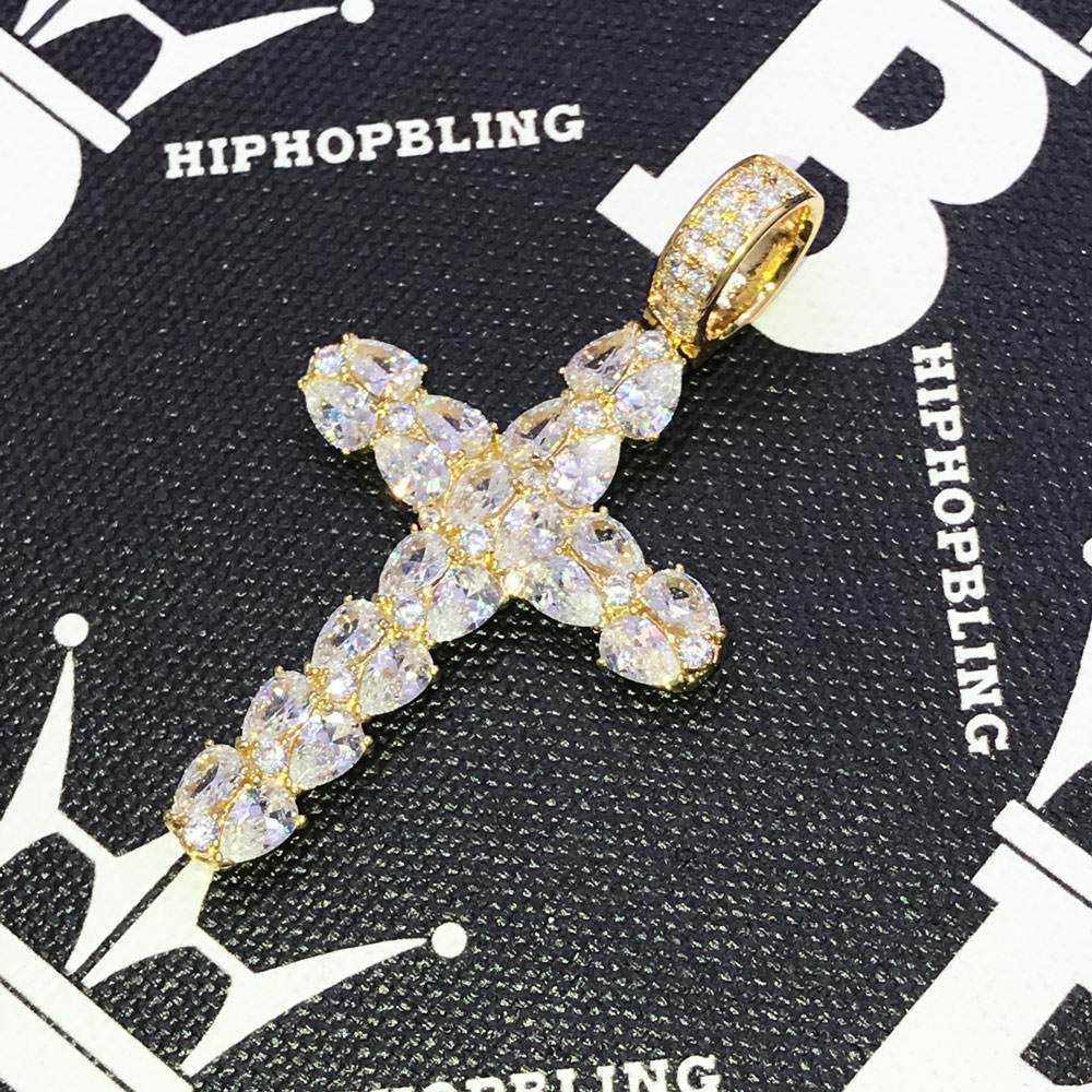 Pear Cut Cross CZ Hip Hop Bling Bling Pendant
