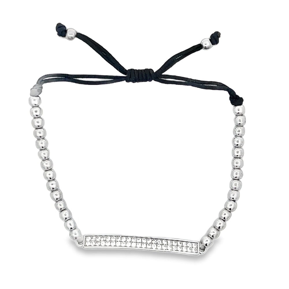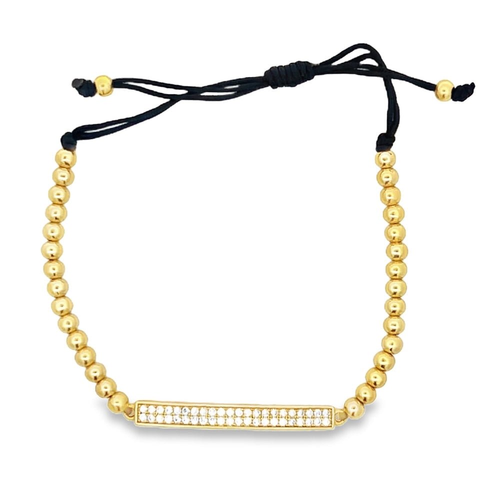 CZ ID Bar Bead Rope Bracelet .925 Sterling Silver. Quality crafted fashion hip hop bling bracelet. Crafted from fine .925 Sterling Silver and wrapped to look and feel like solid Gold at a fraction of the cost. A must have in your hip hop jewelry collection.