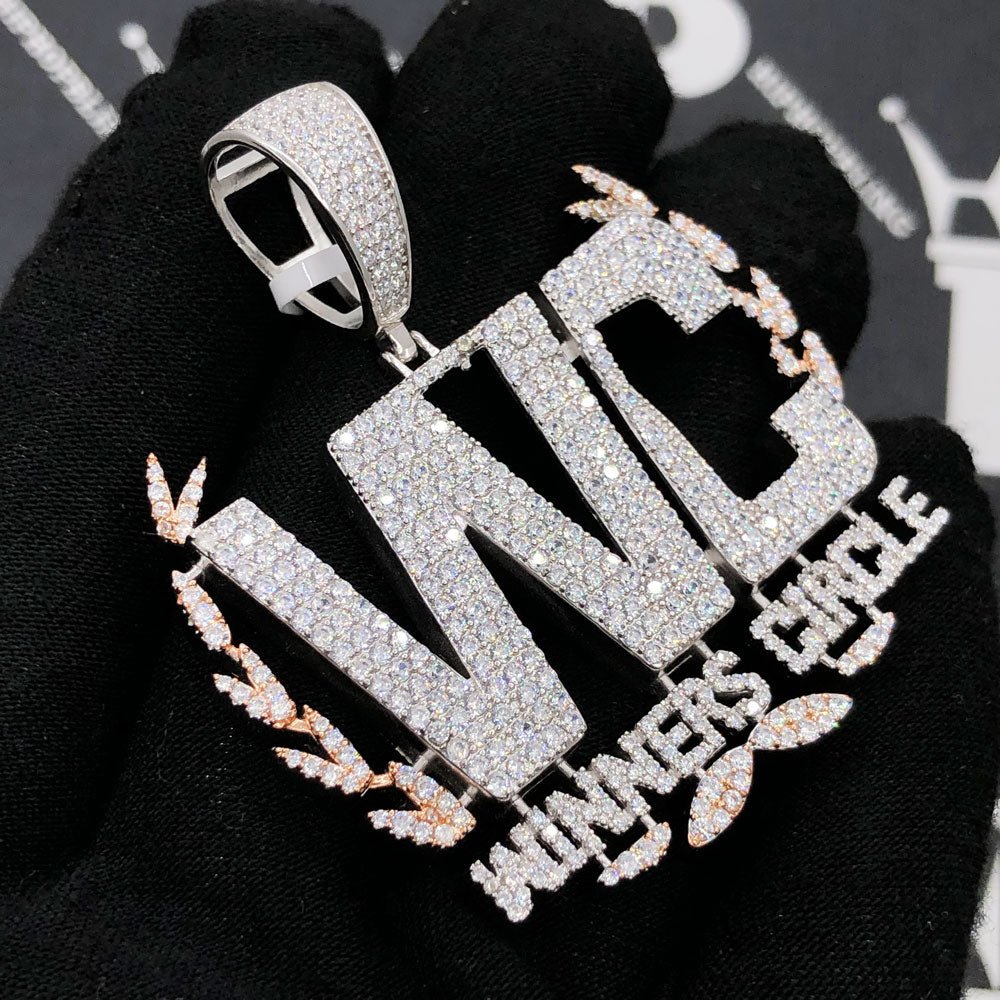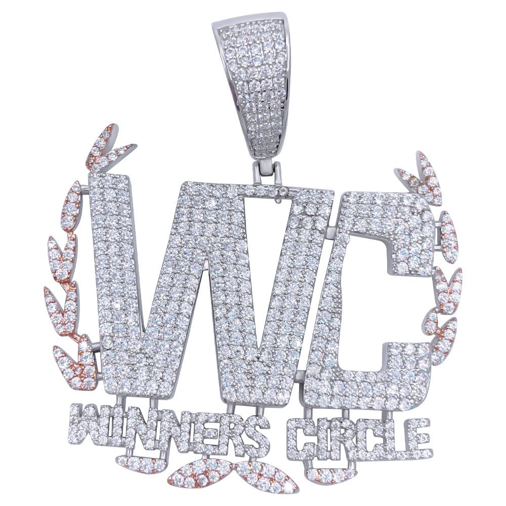 .925 Silver Winners Circle VVS CZ Iced Out Pendant.  Crafted from real Solid .925 Sterling Silver with an incredible bling bling shine.  Limited Edition Iced Out Hip Hop Pendant.  Stones are VVS Simulated Diamonds Prong Set, the same way genuine diamond hip hop jewelry is made.  Get the same look, feel and shine for less on real Silver.  Stand out from the crowd with this this detailed quality made iced out pendant.